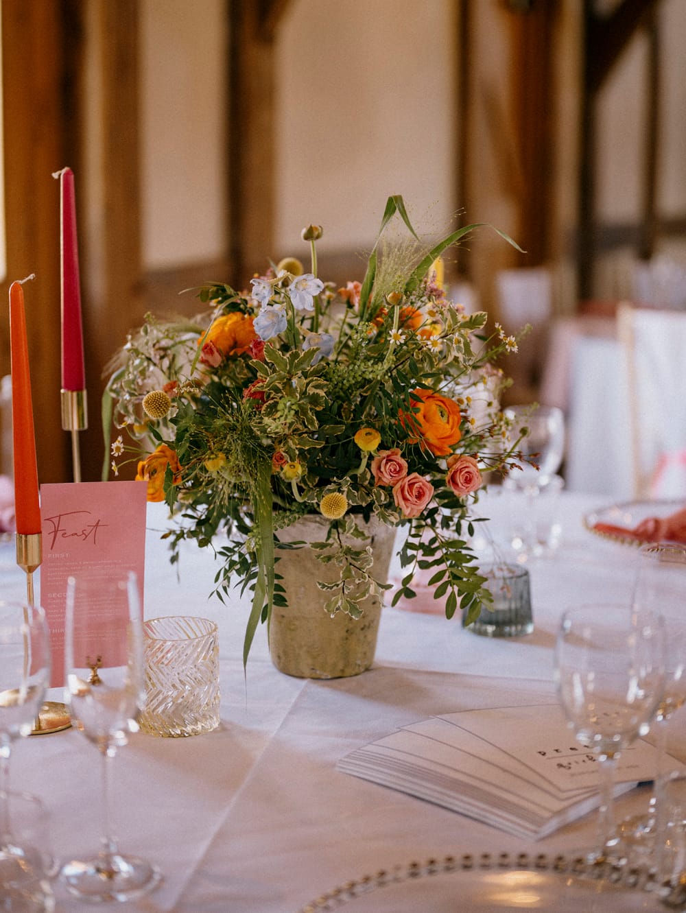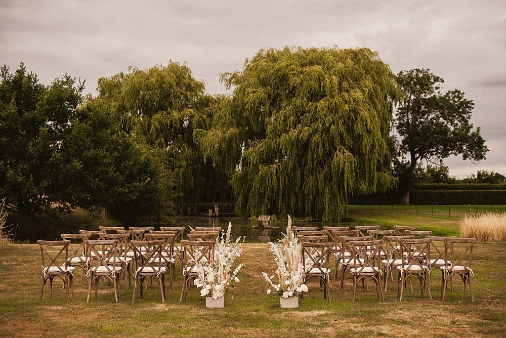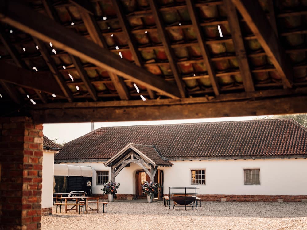 The venue offers a choice of stunning locations for your ceremony, indoors or out. The indoor barns feature exposed walls and locally sourced oak, creating a romantic and warm atmosphere. Outdoor options include wild meadows with views of Kirkstead Abbey or a quintessential countryside setting in the heart of nature.