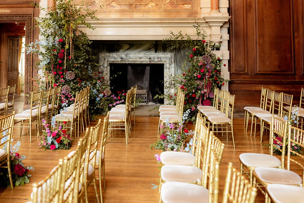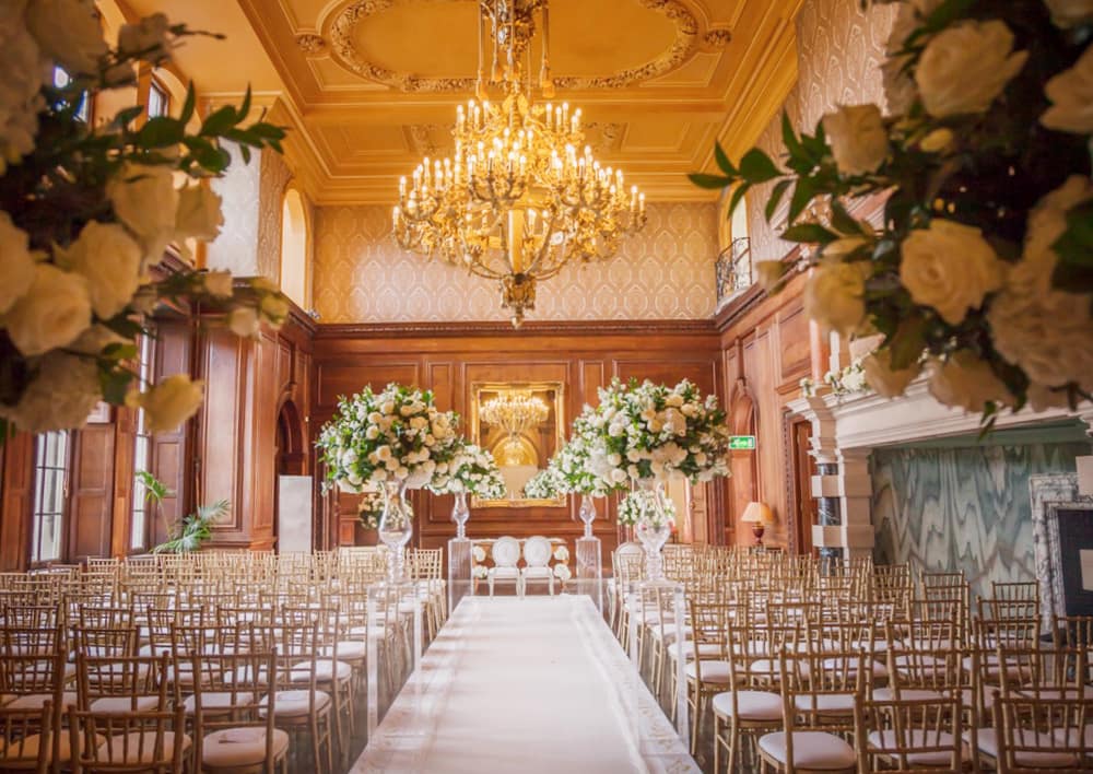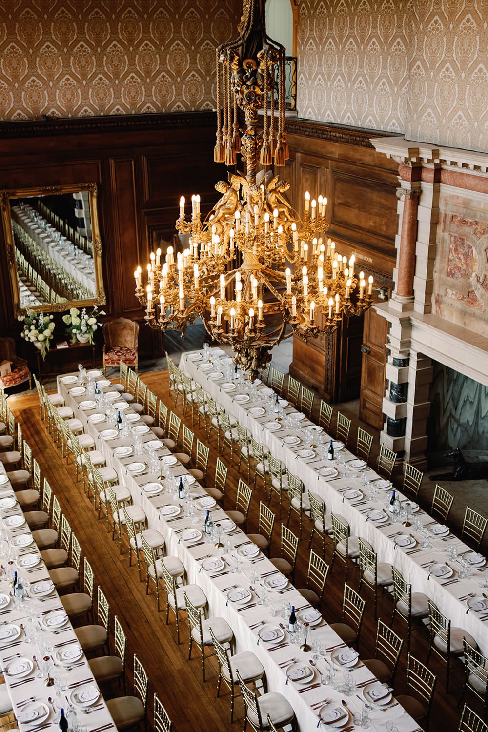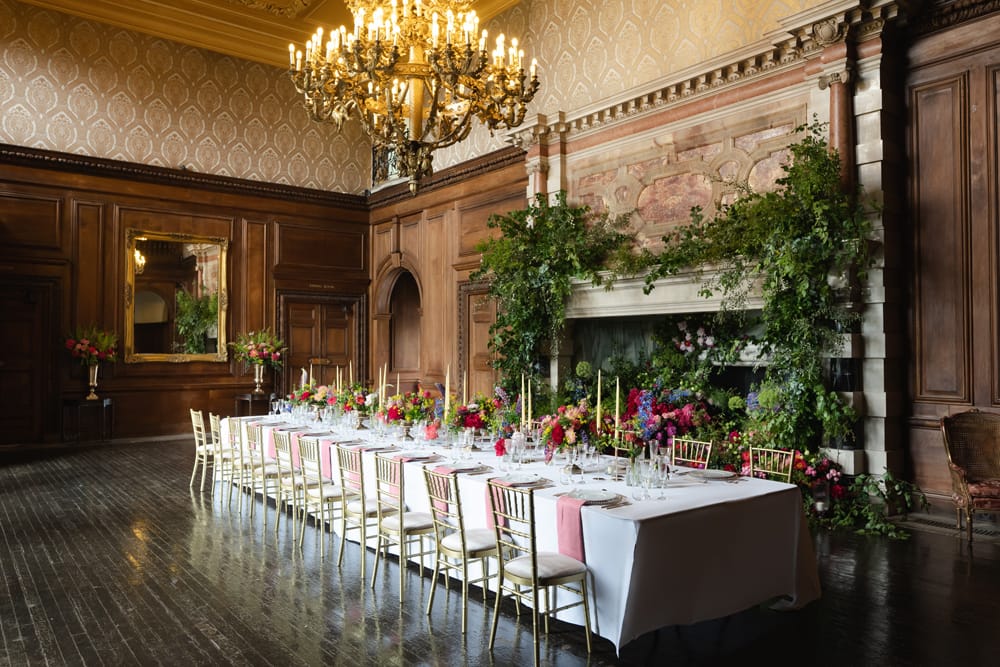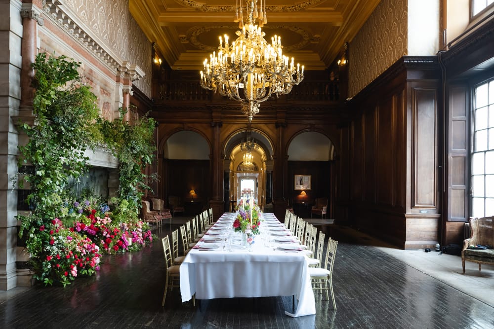 The Great Hall forms the heart of the Palace, an opulent space with soaring ceilings designed by renowned Scottish architect Norman Shaw. A French chandelier, handpicked by Shaw from a French château, hangs at its centre, casting a warm glow over the celebrations. Surrounding rooms feature refined and timeless marble fireplaces, intricate mouldings, and delicate plasterwork. On a sunny day, the South Lawn provides an elegant outdoor space for guests to mingle and capture those perfect photographs.