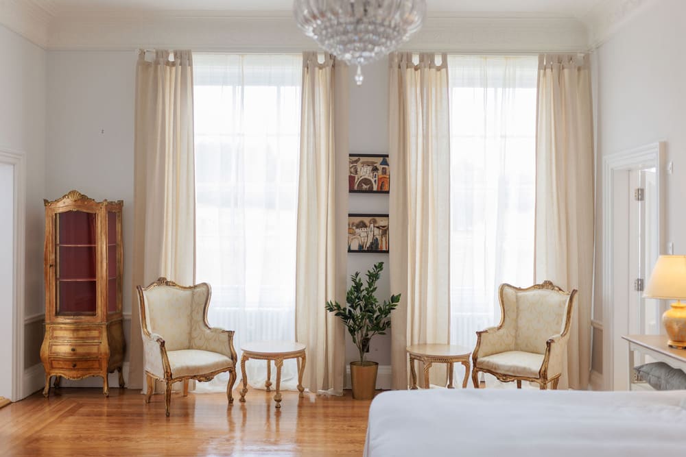 The venue’s accommodation offers a luxurious experience for you and your guests. The Honeymoon Suite in the Palace is grand, light, and airy, providing the perfect retreat for newlyweds. In addition, there are two further luxury guest bedrooms within the Palace, ensuring comfort and elegance for close family or friends. For larger gatherings, the estate also features five beautifully appointed houses that sleep up to 42 guests (including 10 on sofa beds), offering convenient and stylish accommodation for your guests, all set within the stunning grounds of the Palace.