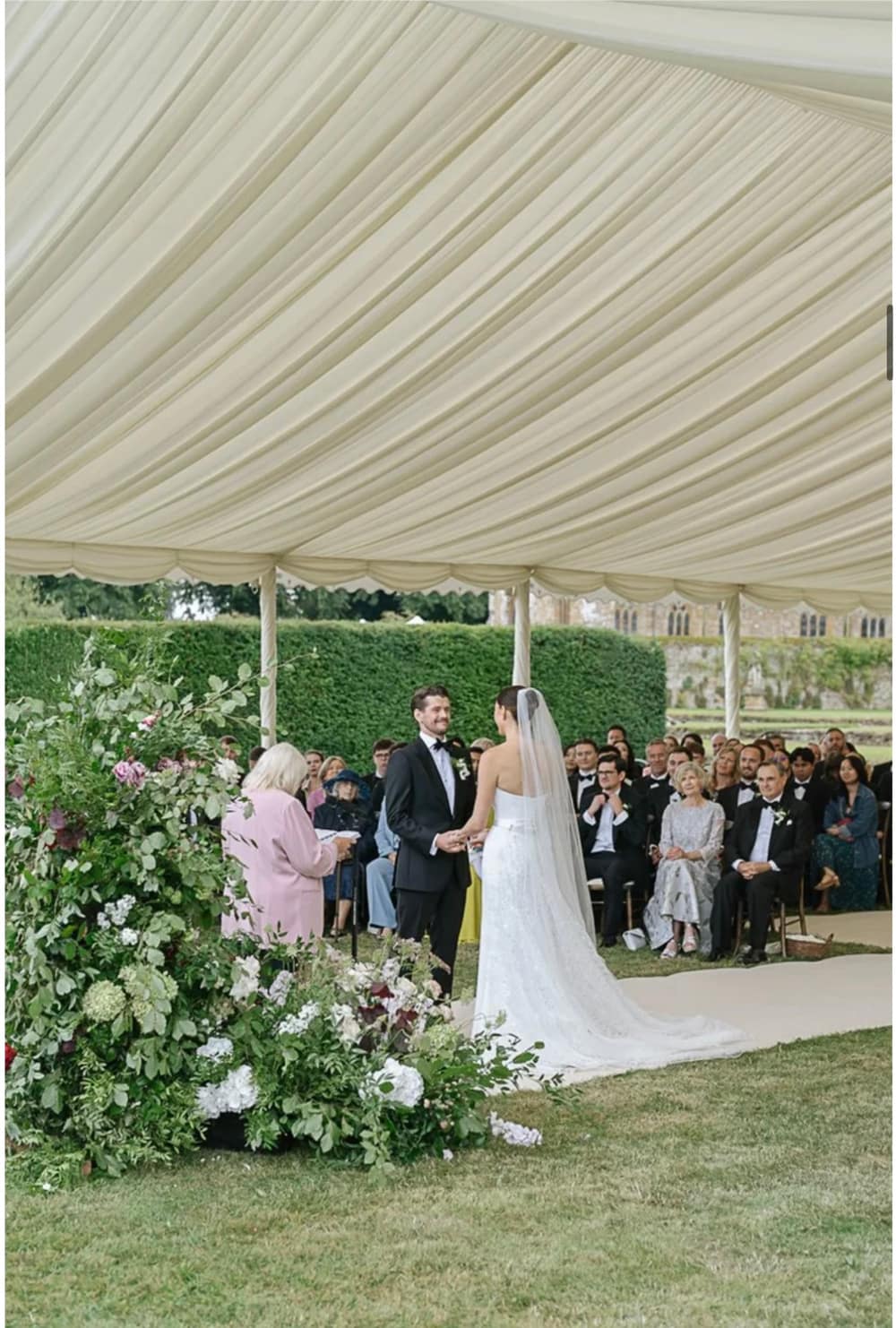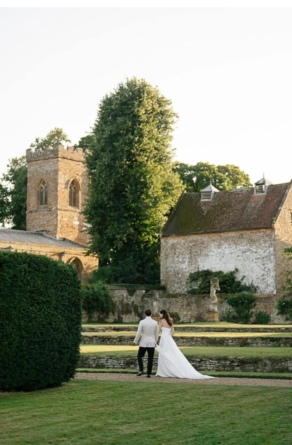 At Ashby Manor House, there is a ceremony space for every vision. Couples may exchange vows in the 1,000-year-old Norman church of St Leodegarius, then slip through a hidden gate to the statue garden for drinks among sculpted greenery. For smaller gatherings of up to 60 guests, the Lutyens Hall offers a light-filled indoor option, its vaulted ceiling and elegant proportions creating a calm, refined backdrop. Alternatively, the raised terrace overlooking the formal parterre and fountain gives an open-air choice framed by gardens. Each space feels considered and connected, allowing your ceremony to reflect both history and your own style.