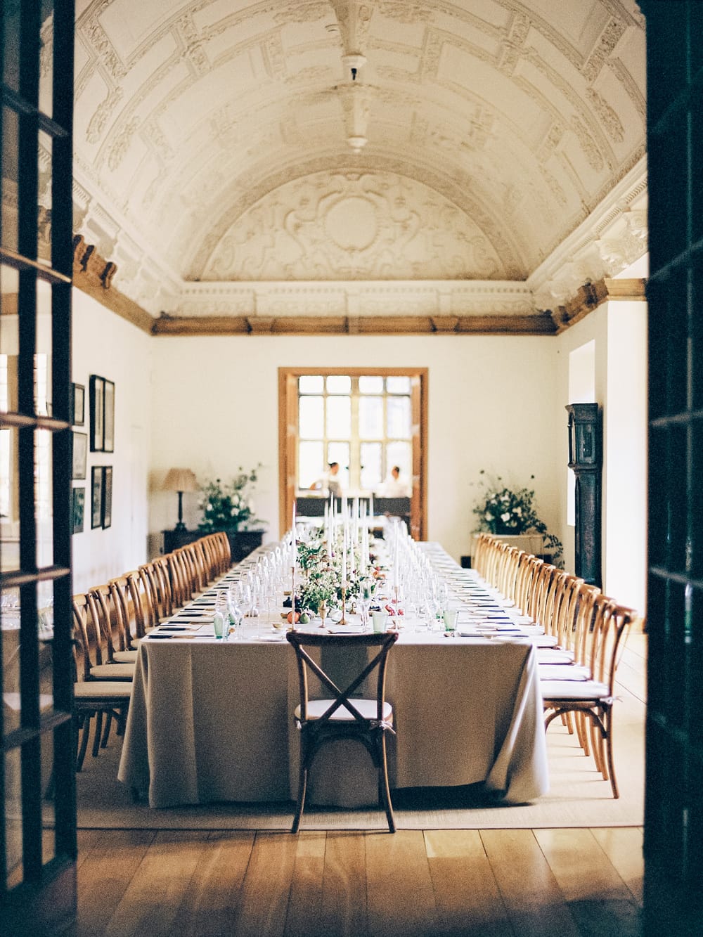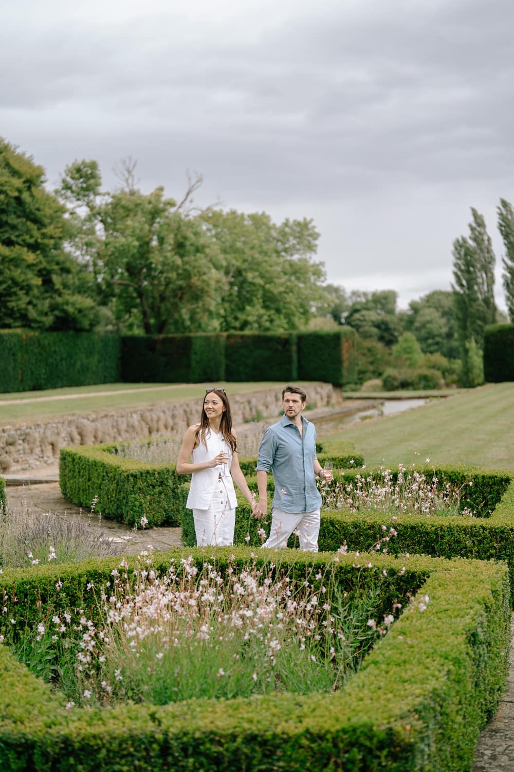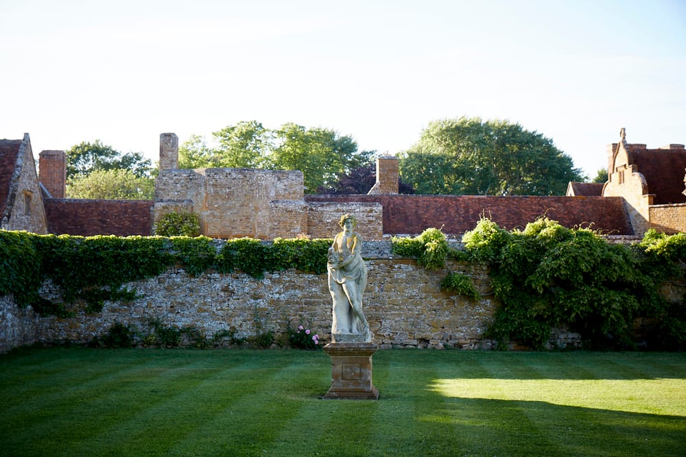 Ashby Manor House stands in the south Northamptonshire countryside, where rolling lawns, formal parterre gardens, and tree-lined avenues stretch from the house to the ponds and terraces beyond. Layers of history are visible in every corner, from the Norman gatehouse to the Tudor wings and the Lutyens redesigns of the early 20th century. Light filters through grand windows and bounces off the white-panelled interiors, connecting the house to its grounds. Fountain-edged terraces, the statue garden, and the canal create varied outdoor spaces that feel private yet expansive, giving your wedding the intimacy of a home and the quiet grandeur of a historic estate.