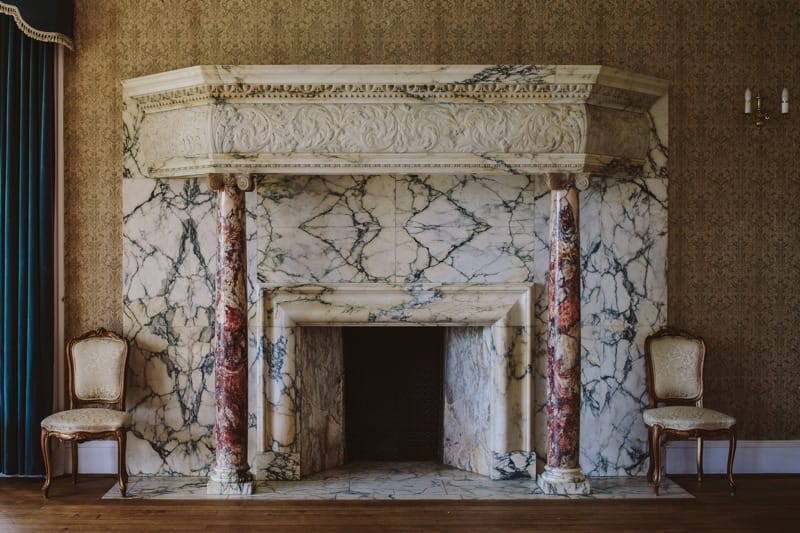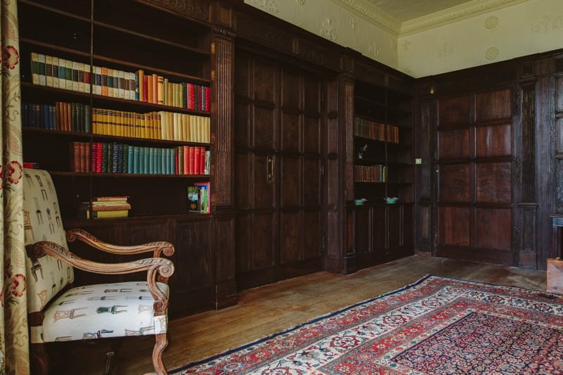 Wooden panelling and carved ceilings, Persian rugs and huge sofas, a balcony and a marble fireplace are just some of the features that make up the seven stunning reception rooms of the main house.