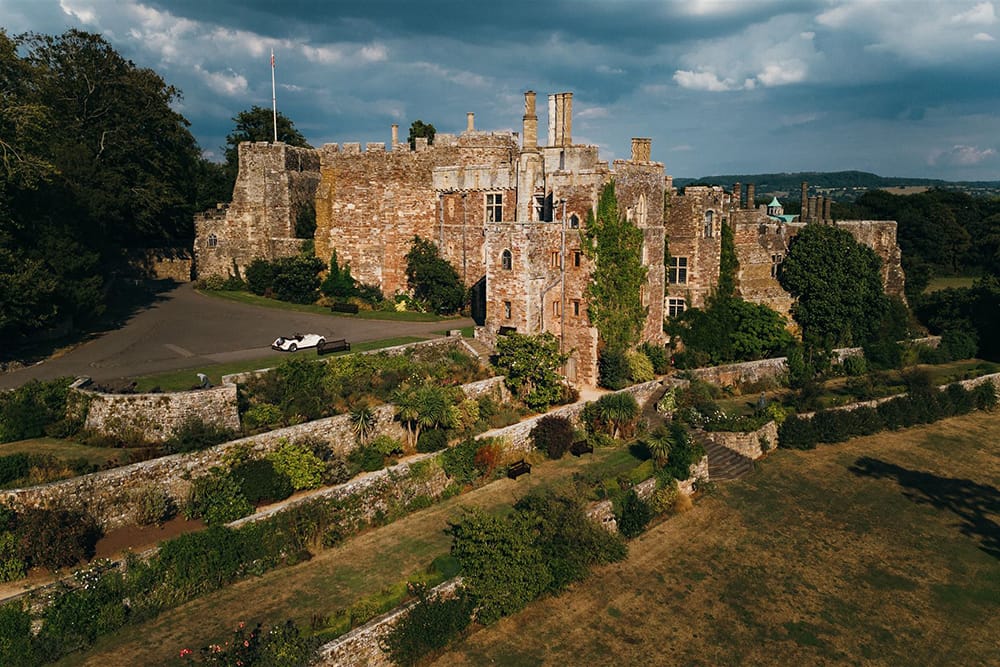 Berkeley Castle, a magnificent medieval fortress, is located on the outskirts of The Cotswolds, nestled in the heart of the Gloucestershire countryside. Surrounded by mature, terraced gardens, the castle offers a stunning setting with sweeping views and a historical ambience. The family has resided in the castle since 1153, making it a beautiful venue and a piece of living history.