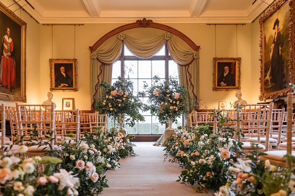 Birdsall House, an exquisite wedding venue in North Yorkshire, offers a blend of historic elegance and refined modern luxury. Couples can choose from a variety of settings within the estate for their ceremonies, from the romantic Little Temple for intimate ceremonies to the grand Ballroom for larger celebrations.