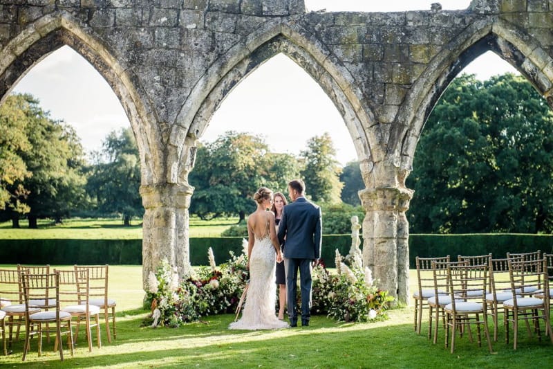 Birdsall House provides diverse options for ceremonies, whether religious, civil, or cultural. Couples can exchange vows within the house’s stately reception rooms or in the serene 12th-century Ruins in the gardens.