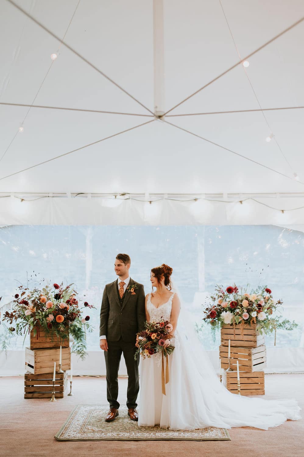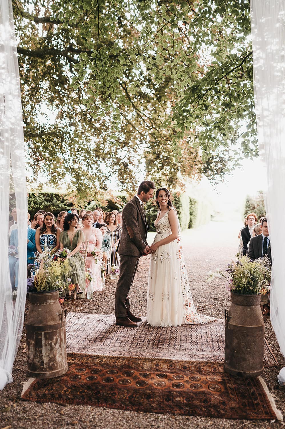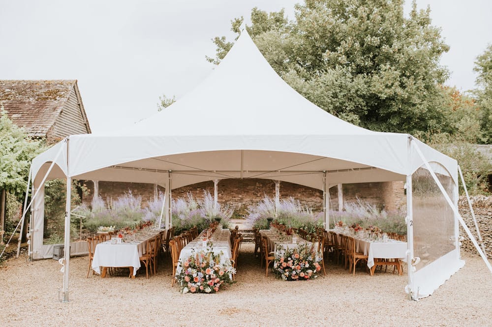 We chose the venue because we wanted a marquee reception, accommodation, and plenty of contingency plans so we didn’t need to worry about the weather. With spacious rooms downstairs in the house and a cosy bar area, your guests would still have a lovely time exploring the venue, even if you did have a rainy day. We were lucky and had sun, and it was gorgeous. We got married in the fold yard, and there were bees and butterflies busy in the lavender behind us.