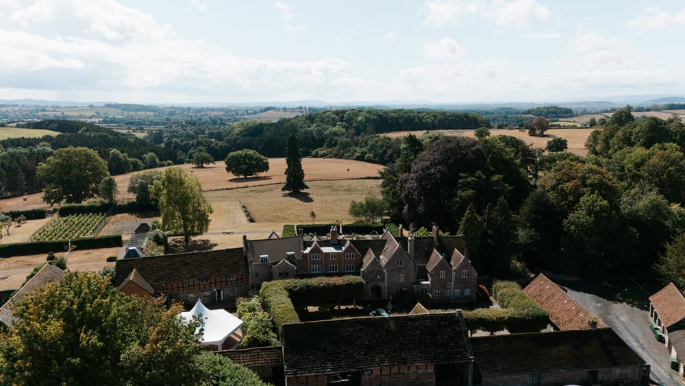 With its far-reaching views, beautiful gardens and elegant interiors, Broadfield is one of the most special wedding venues in Herefordshire. This historic country estate, located outside the village of Bodenham and only a short drive from Hereford, spans a thousand-acre farm. Originally dating back to the 14th century and renovated in 2018, Broadfield retains its rich, historical charm while providing luxurious comforts. The interiors showcase timeless wood panelling, impressive stone fireplaces, and stucco ceilings seamlessly paired with modern amenities like spacious showers and plush, king-sized beds. The estate’s lush gardens and extensive grounds create an idyllic countryside retreat, perfect for a range of wedding styles, from rustic to sophisticated.