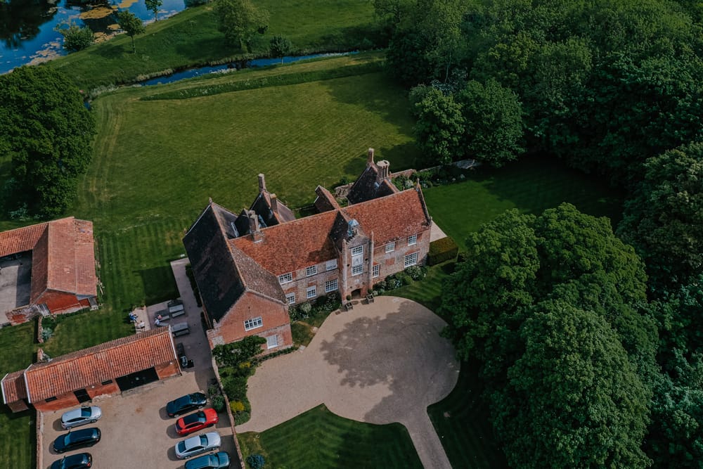 Bruisyard Country Estate stands as an enchanting venue for a three-day wedding celebration. The country house, with its elegant façade, resides at the heart of 700 acres of informal and varied grounds. Dating back over 700 years, the estate incorporates the remnants of a fourteenth-century nunnery, while the main house boasts early 17th-century architecture. This beautiful residence features three storeys, including converted attics with charming accommodations. The Barn is a picturesque multi-use event space showcasing a beamed dining hall and a separate galleried medieval hall; all flooded with natural light.