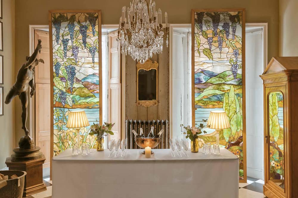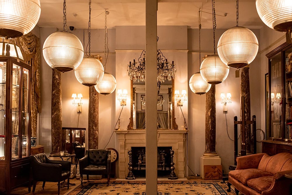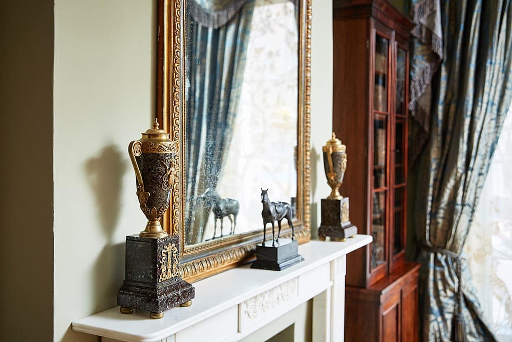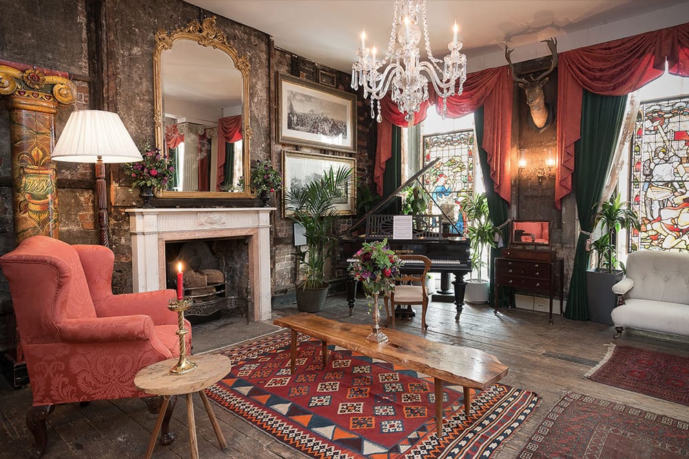 Welcome drinks are served in the statuary gardens (weather permitting), and the Parlour, Library and Study rooms before dining in the grand Saloon/Smoking Room. Reclaimed furniture and vintage paraphernalia jostle with an eclectic display of fascinating antiques in each room.