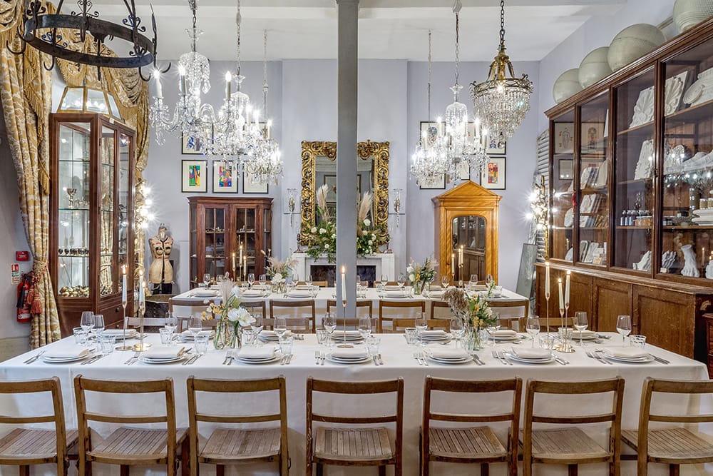 Yes. As the house is an antiques showroom, the house is already beautifully decorated. The tables are dressed in white linen, in-house service ware and tealights.