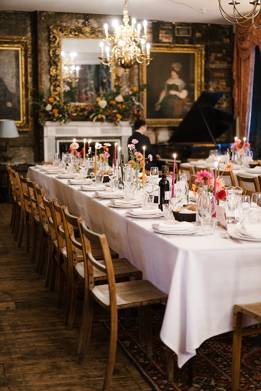 Dancing takes place in the cellars with wine vaults, large fireplaces, ancient flagstones and venerable brickwork, intimate and hugely atmospheric and so unexpected. Providing a perfect end to a chic and quirky wedding reception.