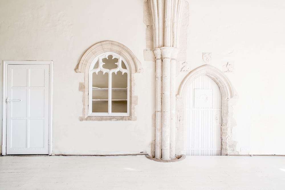 The Great Hall within Butley Priory will delight and wow your guests in equal measure. Its soaring vaulted ceiling, together with stone pillars and beautiful arches, resembles a church. It is a wonderfully intimate space with light and neutral interiors in which to exchange vows.