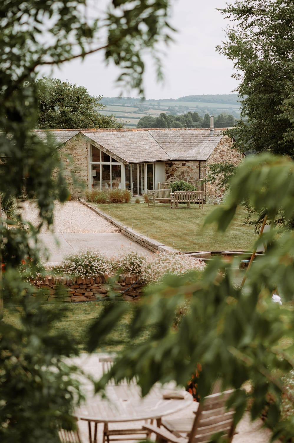 This stylish venue offers the choice of an indoor or outdoor licensed ceremony. Their barn is a romantic space with huge doors opening onto a view of fields and wooded hills. Or take your vows under the Cornish sun among their gardens that roll down to the valley beyond.