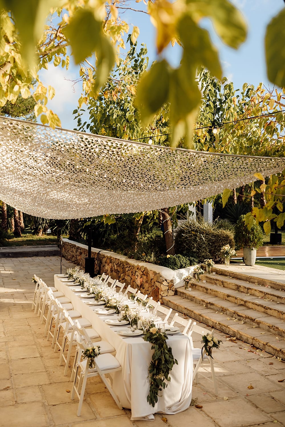 Receptions at Casa Nova Estate flow from the expansive terrace into the grand dining area, framed by high ceilings and traditional stone walls that hold the warmth of the day well into the evening. Candlelight flickers across long banquet tables, while the open-plan layout ensures a smooth transition from dining to dancing. The terrace itself is ideal for sunset cocktails, with views stretching across the estate and beyond.