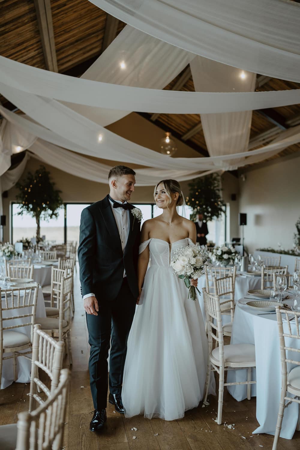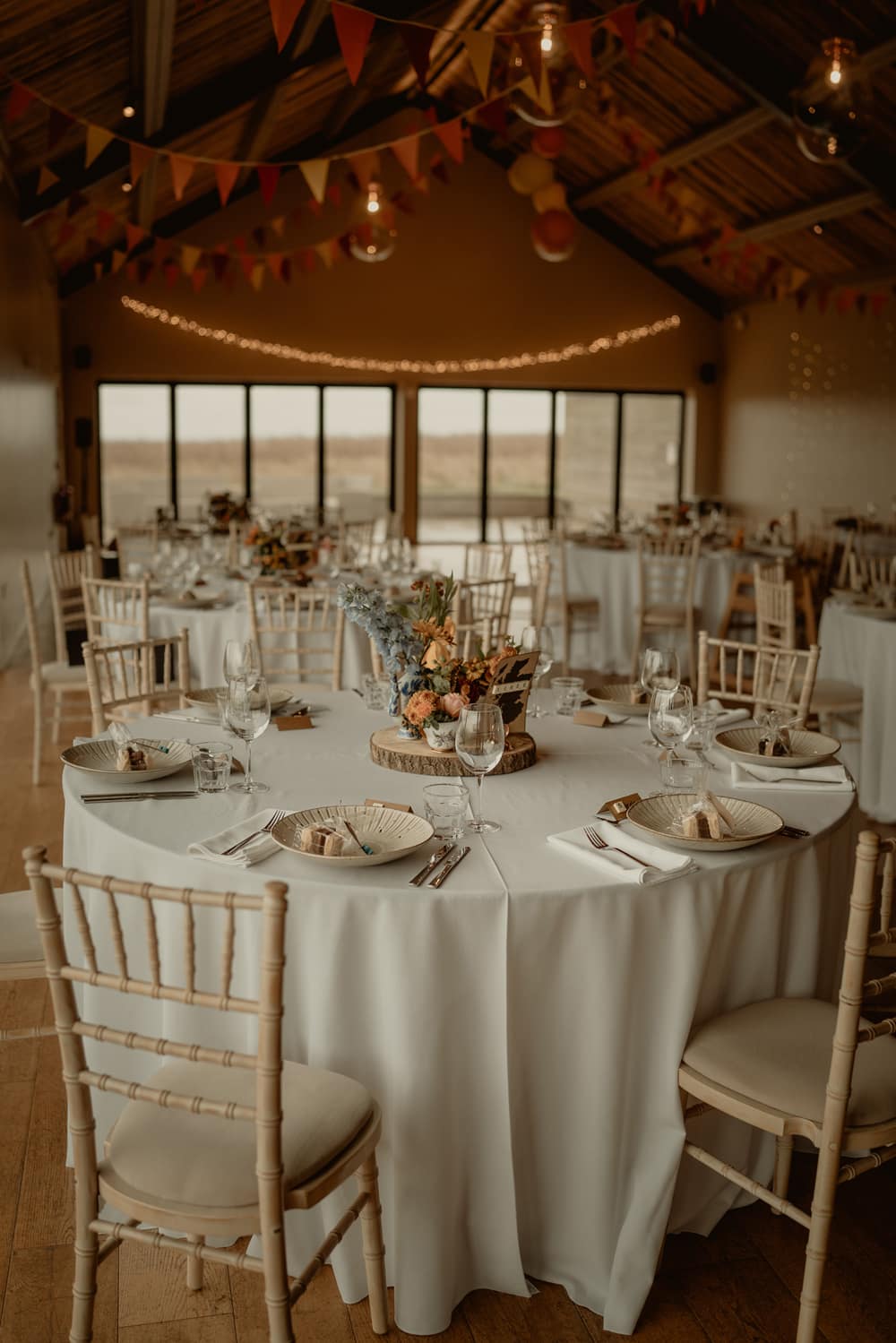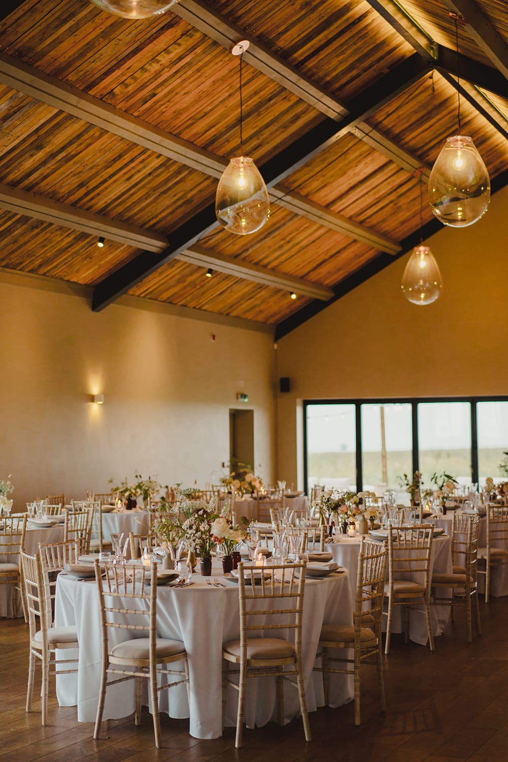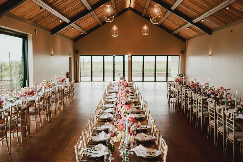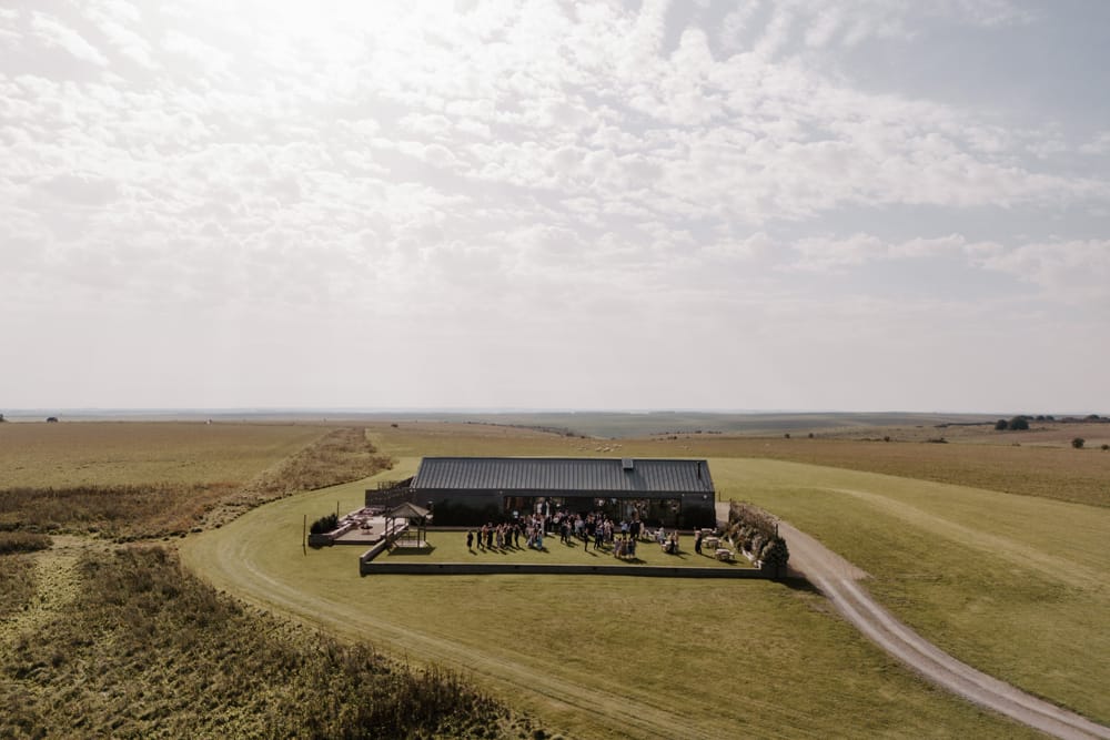 Inside, the aesthetic is modern and minimalist, designed to showcase the landscape and to give couples a versatile canvas for any style. Golden‑hour light and big skies make striking backdrops for photos, and the venue’s layout flows naturally from ceremony to drinks to dining and dancing. As a dedicated events space with thoughtful details and professional support, it balances countryside tranquillity with a polished, design‑led finish.