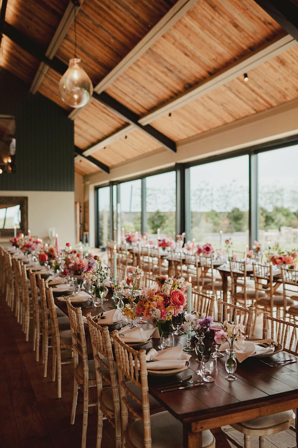 The pergola creates a stunning focal point against the backdrop of organic farmland, lending a relaxed, natural atmosphere to proceedings. Inside, the barn’s arrangement allows guests to witness vows exchanged with striking floor-to-ceiling views as the backdrop. Whichever option couples select, their ceremony will feel personal, stylish and flow seamlessly from the moment they walk down the aisle to the joyful confetti toss.