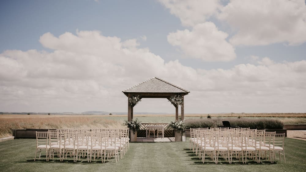 CHALK is licensed for civil ceremonies both indoors and outdoors. Couples can choose between the light-filled barn with its panoramic countryside views or the pergola on the ceremony lawn for an open-air experience. For those preferring a religious service, several picturesque village churches nearby offer beautiful alternatives that pair perfectly with a barn reception.