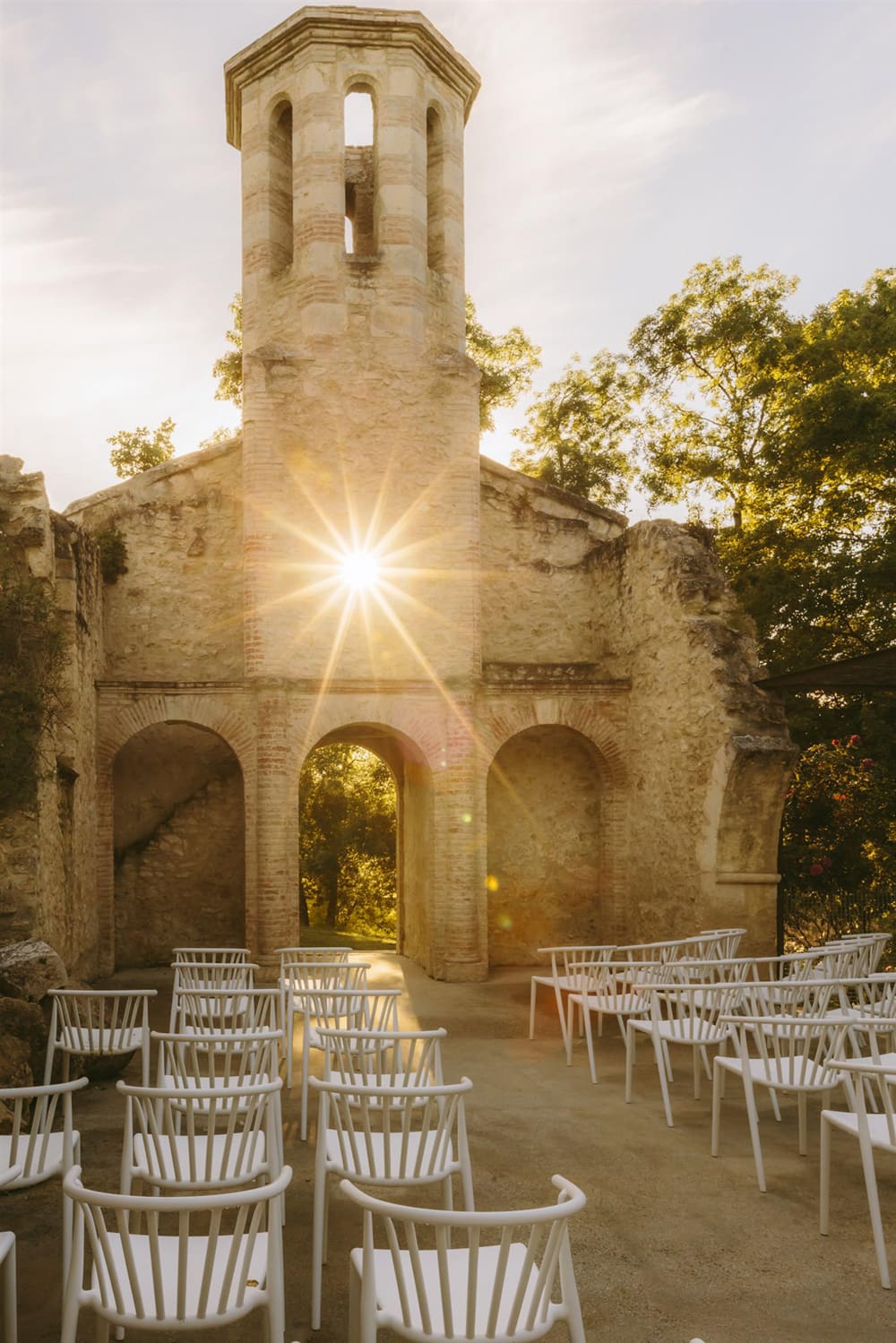 The staff are amazing at Chateau Engalin! They had fantastic attitudes and we heard only glowing reviews of them from our guests. We cannot thank them enough! It felt like we used every inch of the chateau over our weekend and it all felt so intimate and lovely. The rooms were so comfortable and chic, our guests were so impressed. The bridal suite was great to get ready in! The transition from dinner on the chateau terrace to the party in the gallery was seamless. The pool was the perfect backdrop to our recovery day. We definitely put every corner to great use! There simply aren’t enough things we can say about the food. As one guest put it ‘I didn’t know wedding food could be this good’. The food was interesting and fresh, cooked to perfection. We will be thinking about the shrimp from the BBQ for a long time. The heart-shaped ice cream was also a huge hit. It was cool to work on the menu together yet still have so many elements of surprise that allowed us to experience it all as a guest as well. The overall length of the stay for those staying at the chateau was perfect. It allowed us to really bask in every moment and get quality time with our loved ones. A special mention about the rose chapel ruin for being such a beautiful and unique backdrop to the ceremony. Our photos are magical.