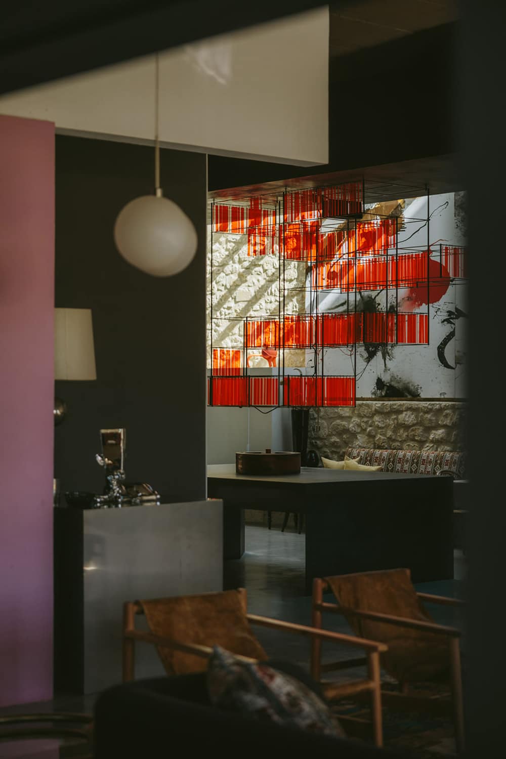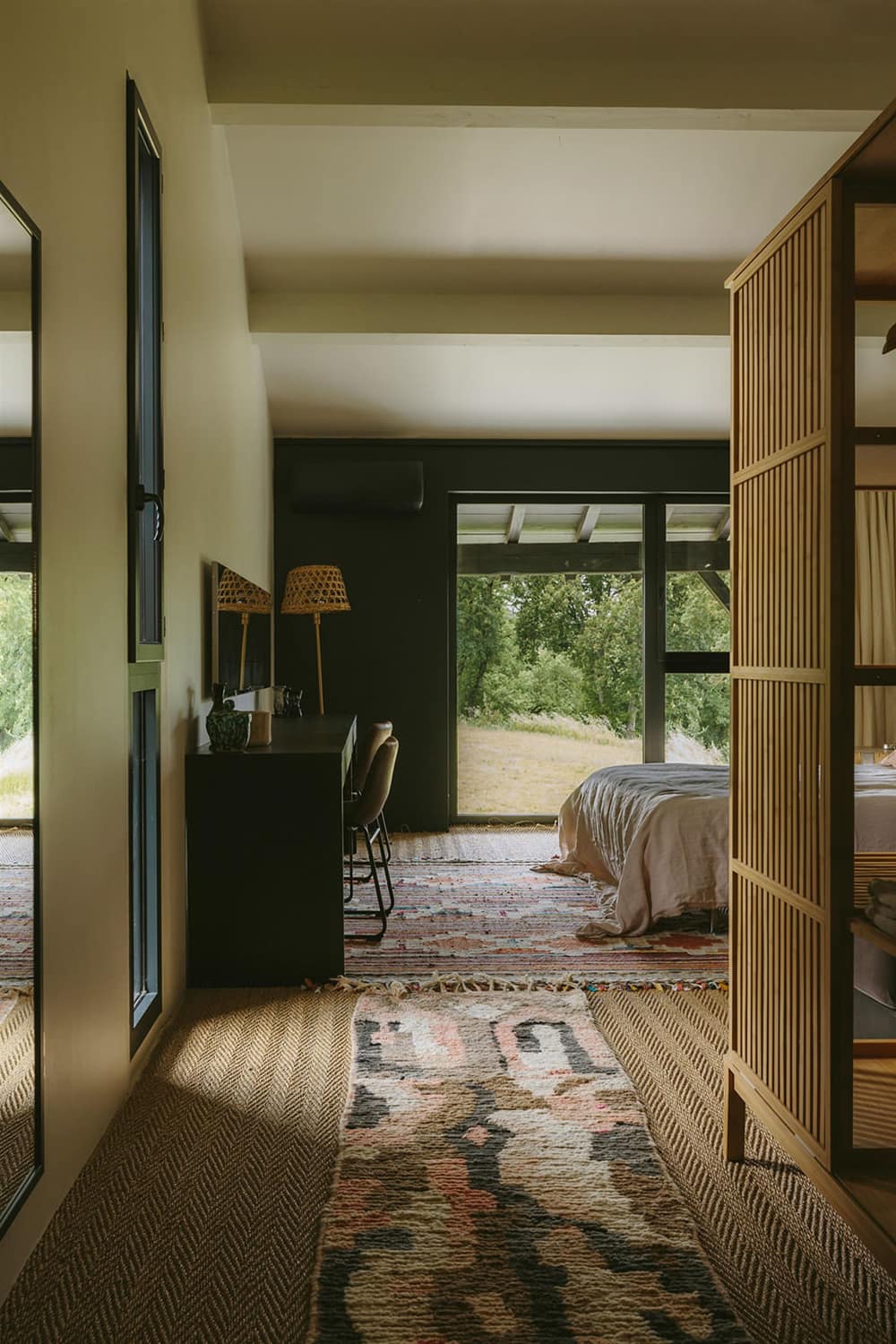 While the Chateau walls have been restored to their original stone, the inside has been stripped back to create a series of modernist living spaces punctuated with works of art and artefacts. The chateau itself sleeps up to 34 guests on-site and has six beautifully designed bedrooms, each with ensuite bathrooms. Across the courtyard, the Woodbarn has been converted to offer eight chic ensuite bedrooms.