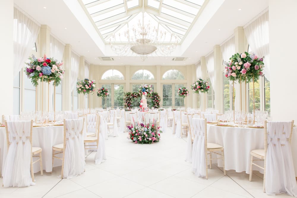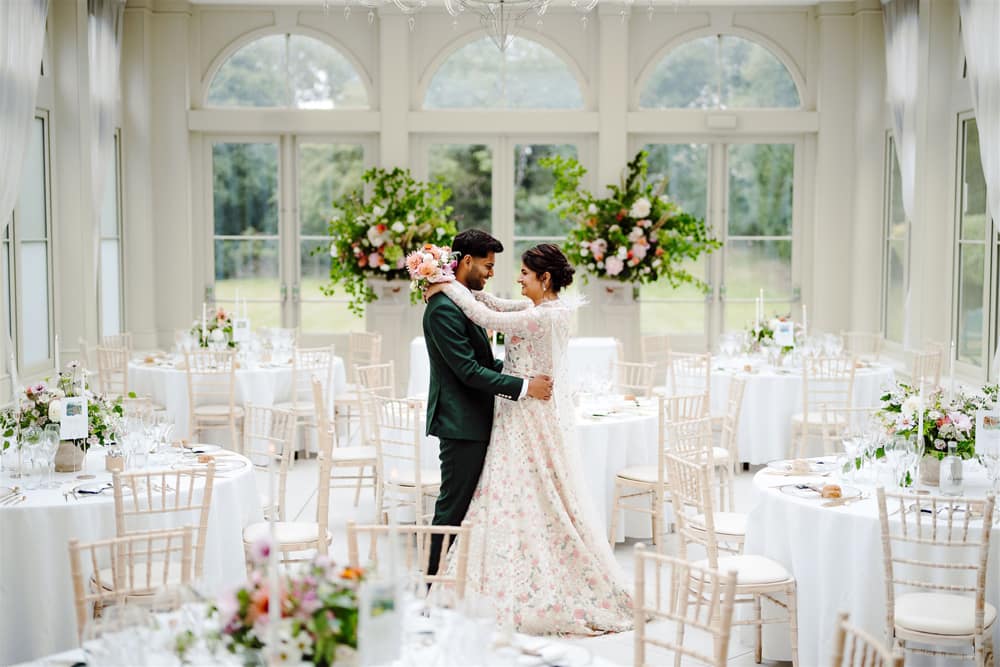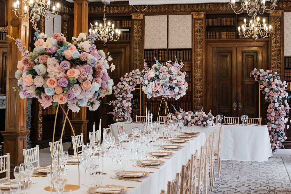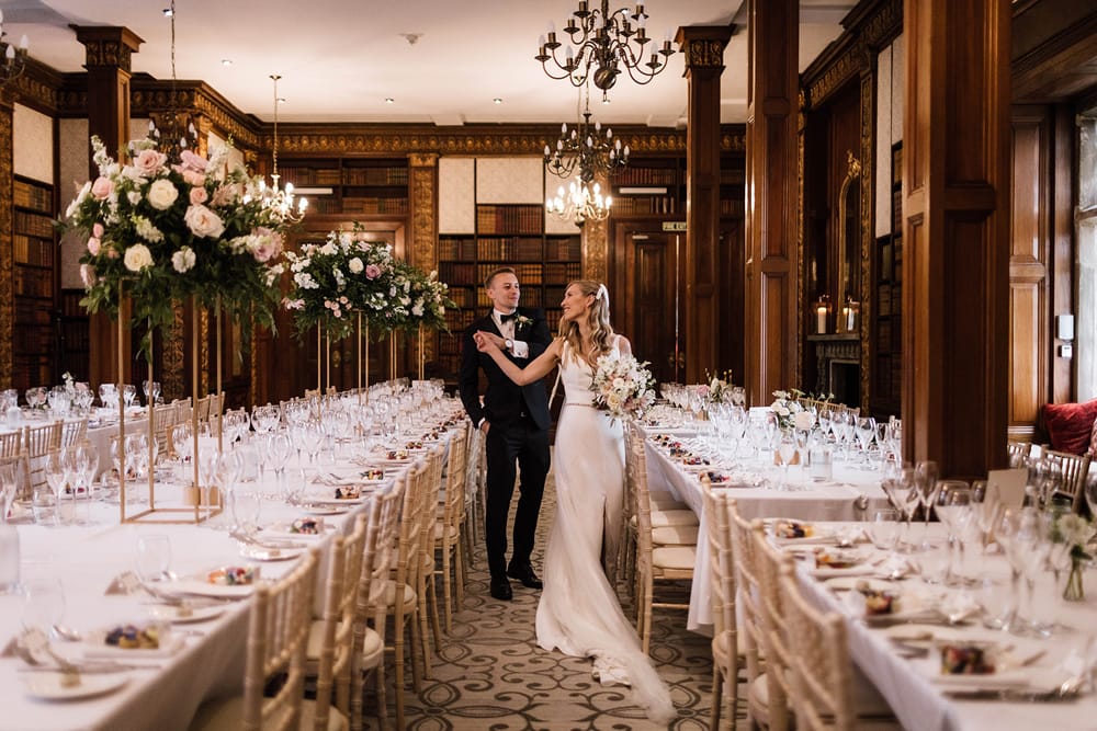 The venue offers versatile dining spaces to suit your celebration. The Orangery provides a bright, airy, and neutral setting, ideal as a blank canvas to bring your vision to life. For those seeking more character and warmth, the Grand Library boasts rich wood panelling and a historic atmosphere. Both spaces can be tailored to your preferences, ensuring a reception that reflects your style.