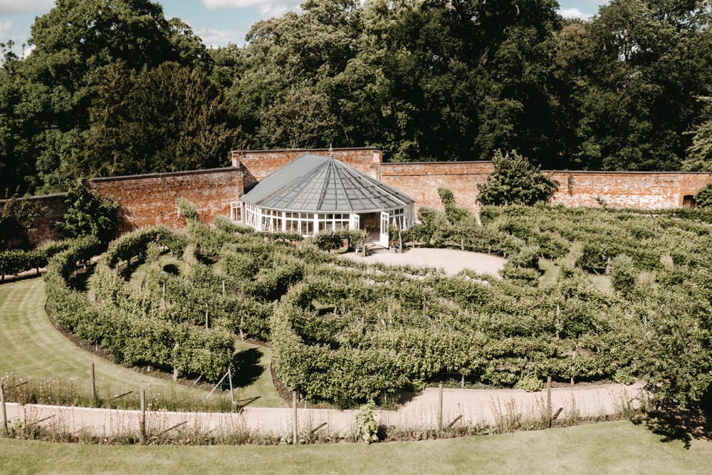 The Glasshouse, located at the heart of the beautiful walled garden, is a stunning spot to exchange your vows. Its striking central blossom tree, soaring windows and delicate detailing create a bright, uplifting atmosphere where nature is part of every moment. If you’re dreaming of an outdoor ceremony, the surrounding fruit tree maze offers an enchanting, al fresco alternative.