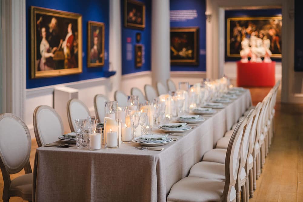 There are some restrictions on candles; however, they may be used in the Chapel and on our Portico, provided they are in enclosed holders and with advance notice. Candles are not permitted inside the main building. LED candles make a great alternative and provide a romantic atmosphere in the Naples Gallery and Adam Hall.