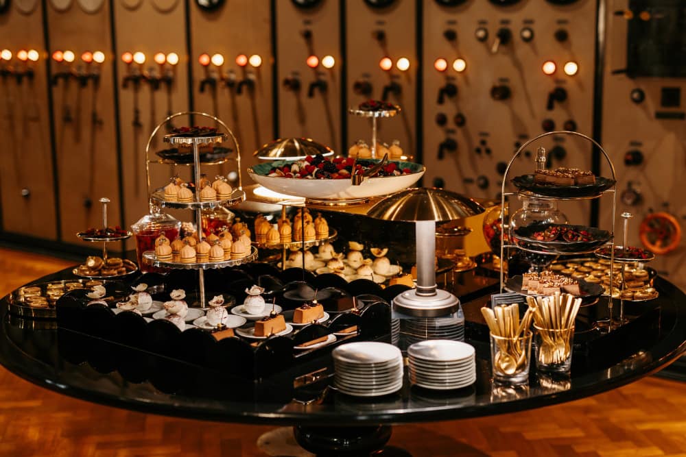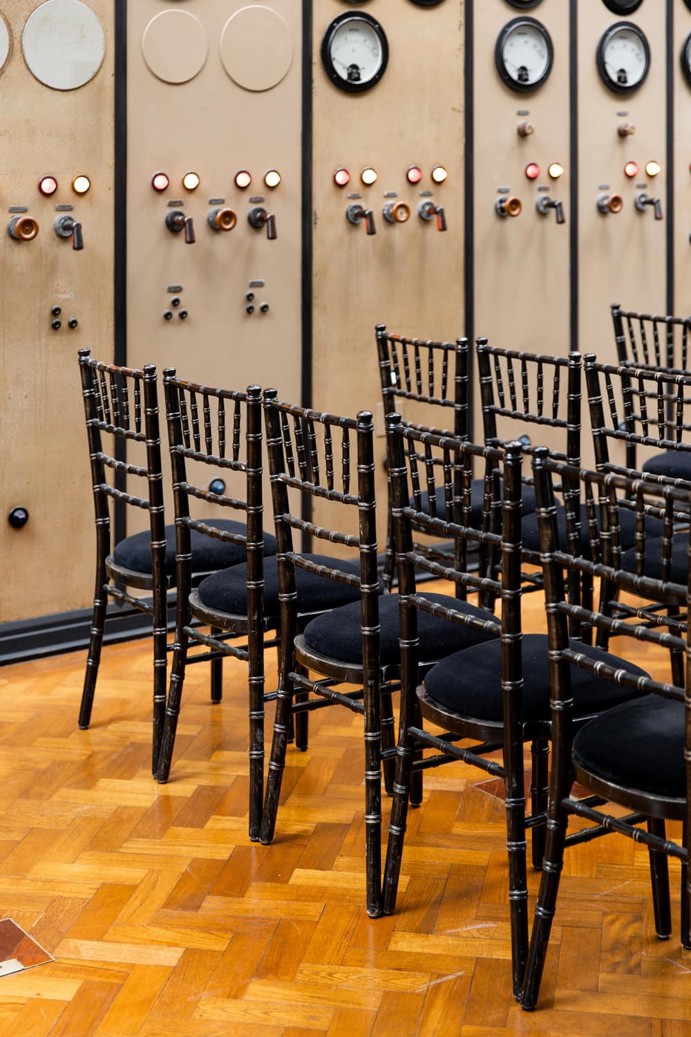 Licensed for marriage and civil partnerships, Control Room A provides a refined and intimate atmosphere for exchanging vows. The main control room, with its original 1930s dials, teak parquet floors, and gold-coffered glass ceiling, creates a distinctive setting of sophistication and warmth. For smaller gatherings or pre-ceremony events, the elegant Director’s Bar, with marble finishes and large windows, offers a flexible alternative. Control Room A can host up to 220 guests, accommodating both intimate and larger celebrations.