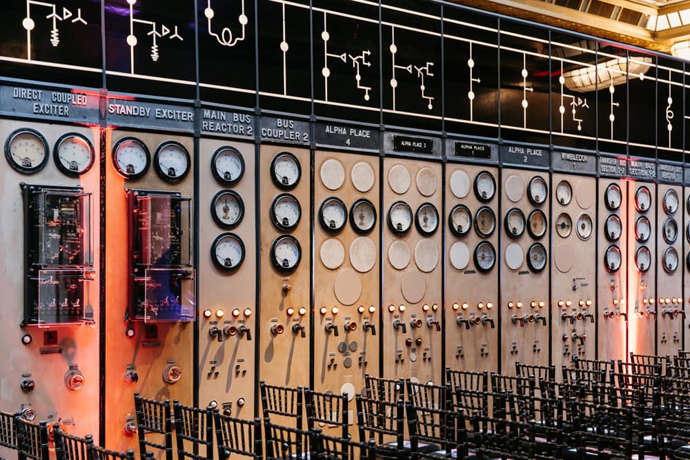 Control Room A is located within the iconic Battersea Power Station, once the hub for distributing electricity across London, including landmarks like Buckingham Palace. Guests are welcomed through the south-side Directors’ Entrance, featuring impressive bronze doors with sculptural energy motifs. Inside, the grand Art Deco lobby, with its polished marble finishes, sets the stage for a day of elegance and historical grandeur. This Grade II* listed venue, a fixture in films like The King’s Speech and Monty Python’s Life of Brian, combines timeless architecture with a touch of cinematic legacy. The venue’s location along the River Thames makes it easily accessible via London Underground, Overground, and nearby riverboat services.