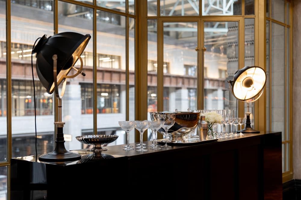 The venue’s Art Deco styling and historical significance create a stunning backdrop for any reception. Control Room A’s adaptable main space allows for various layouts, whether for seated dinners, cocktail-style receptions, or a lively dance floor. Couples can easily transition from ceremony to reception, with the Director’s Bar providing an inviting setting for a pre-dinner gathering or evening cocktails. The ample space in Control Room A supports diverse setups and experiences for guests.