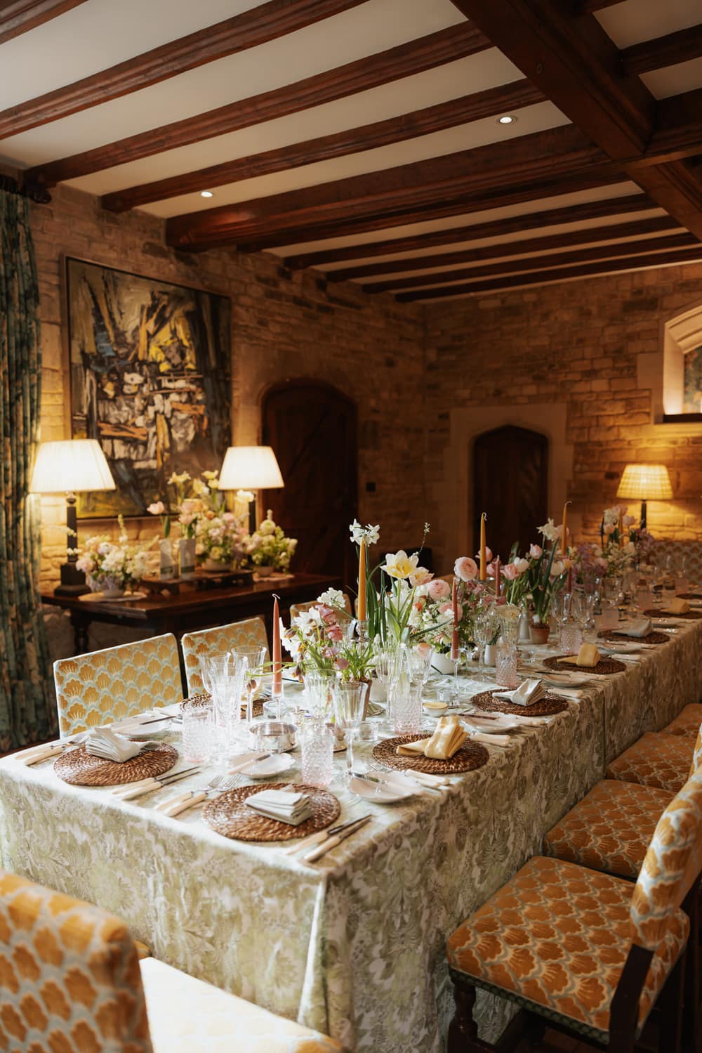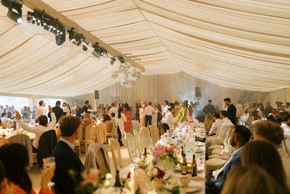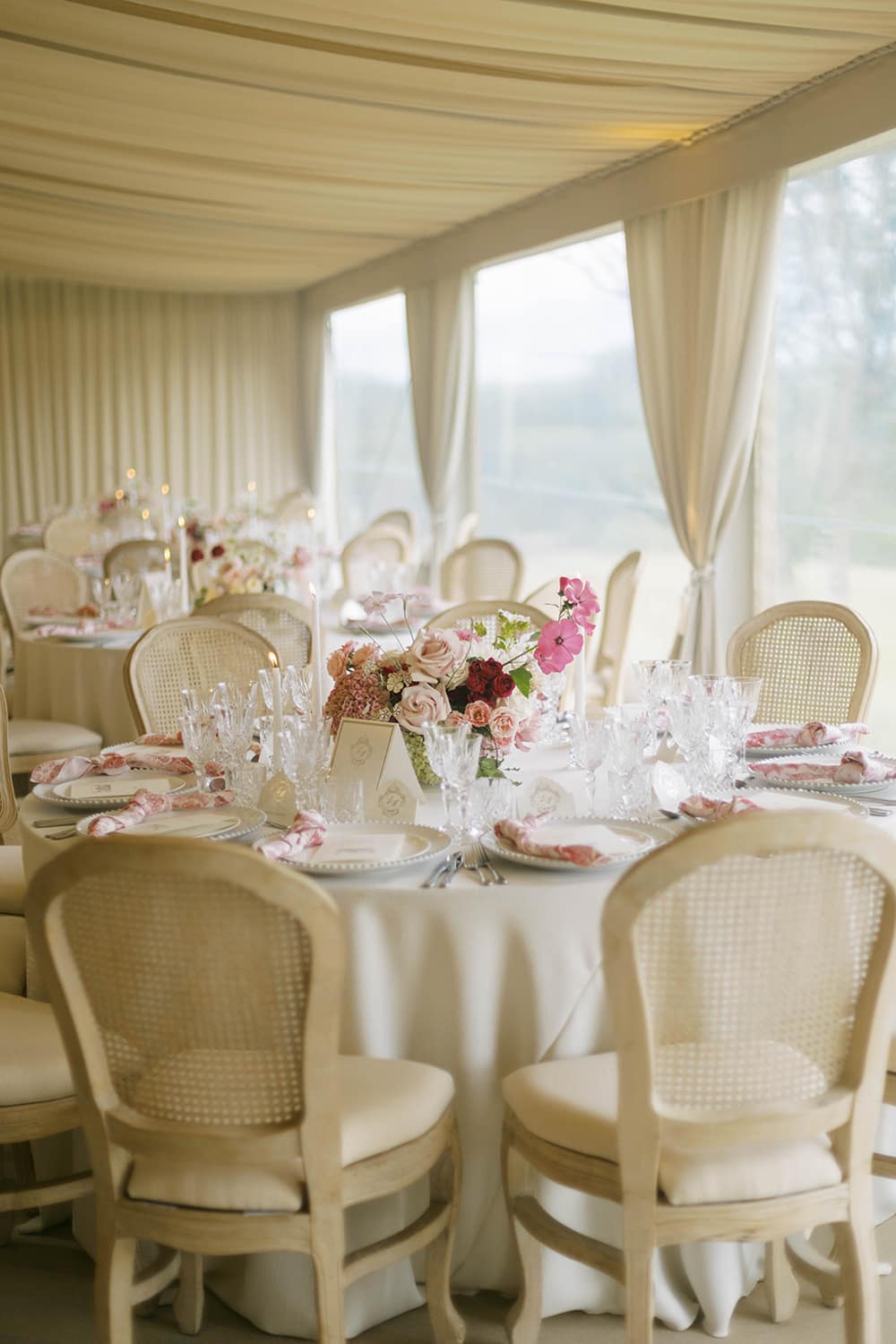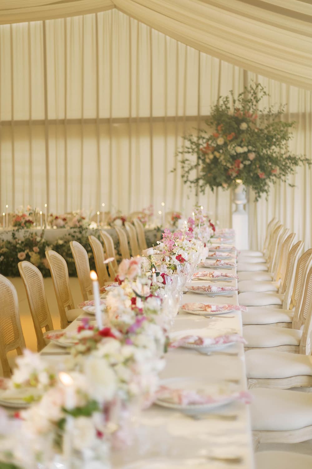 Receptions at Coombe End are flexible, catering to both intimate gatherings and larger parties. The dining room accommodates up to 45 guests, while receptions with more than 45 guests require a marquee or external temporary structure, which couples must arrange separately. The estate’s vast grounds provide various locations to host wedding receptions.
