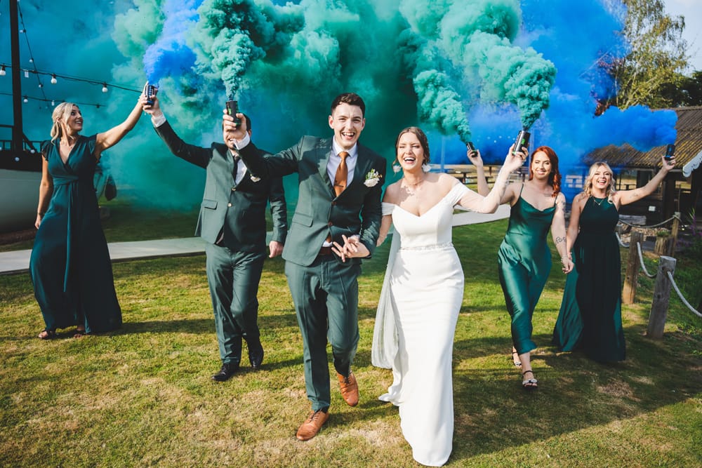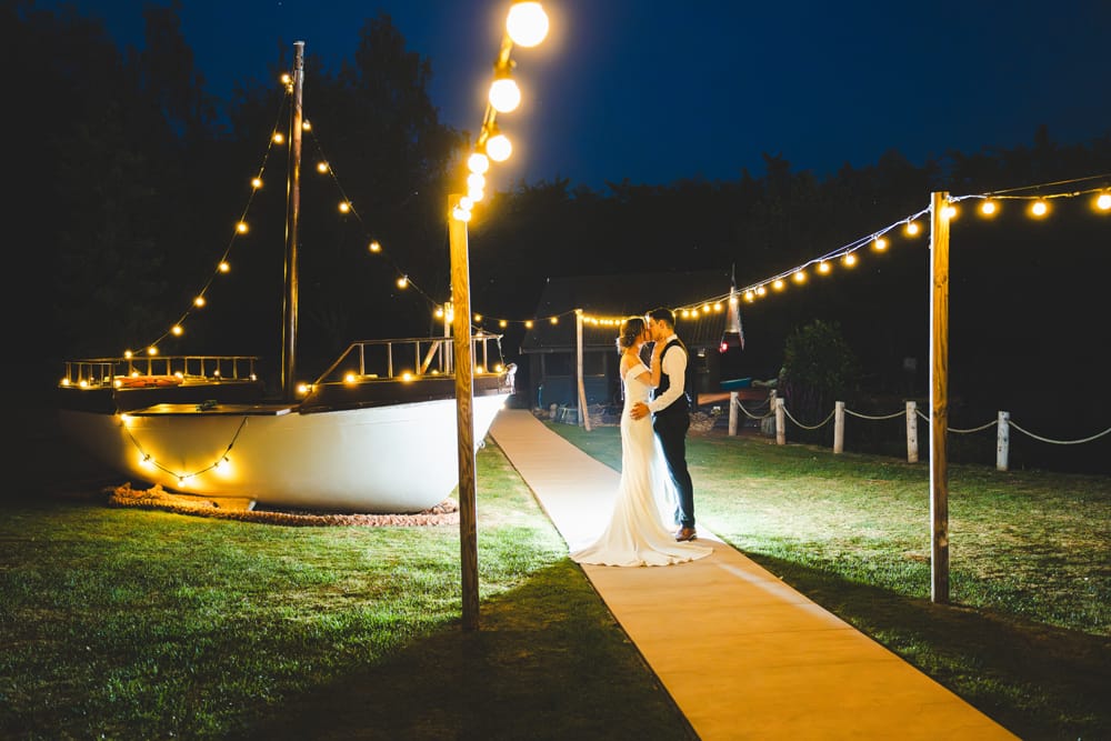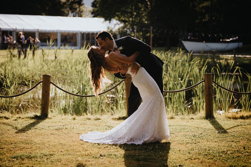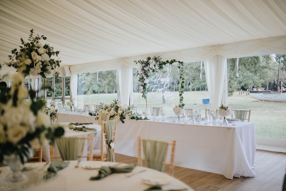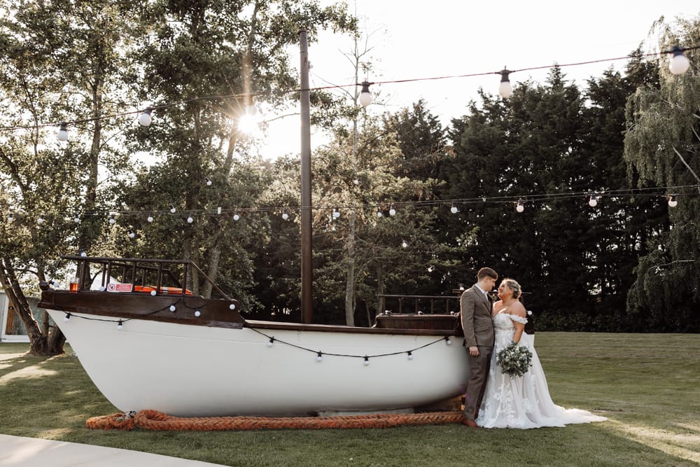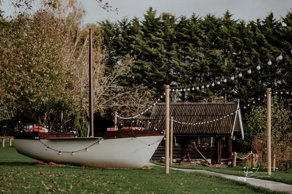 As evening arrives, the space inside the luxury marquee and the grounds will be transformed with a range of lighting in the trees, along the paths and on the mast of the boat. This is the perfect opportunity for a sparkler shot – guests line the way, and you dance along the middle, everyone lighting up the night with sparklers in their hands.