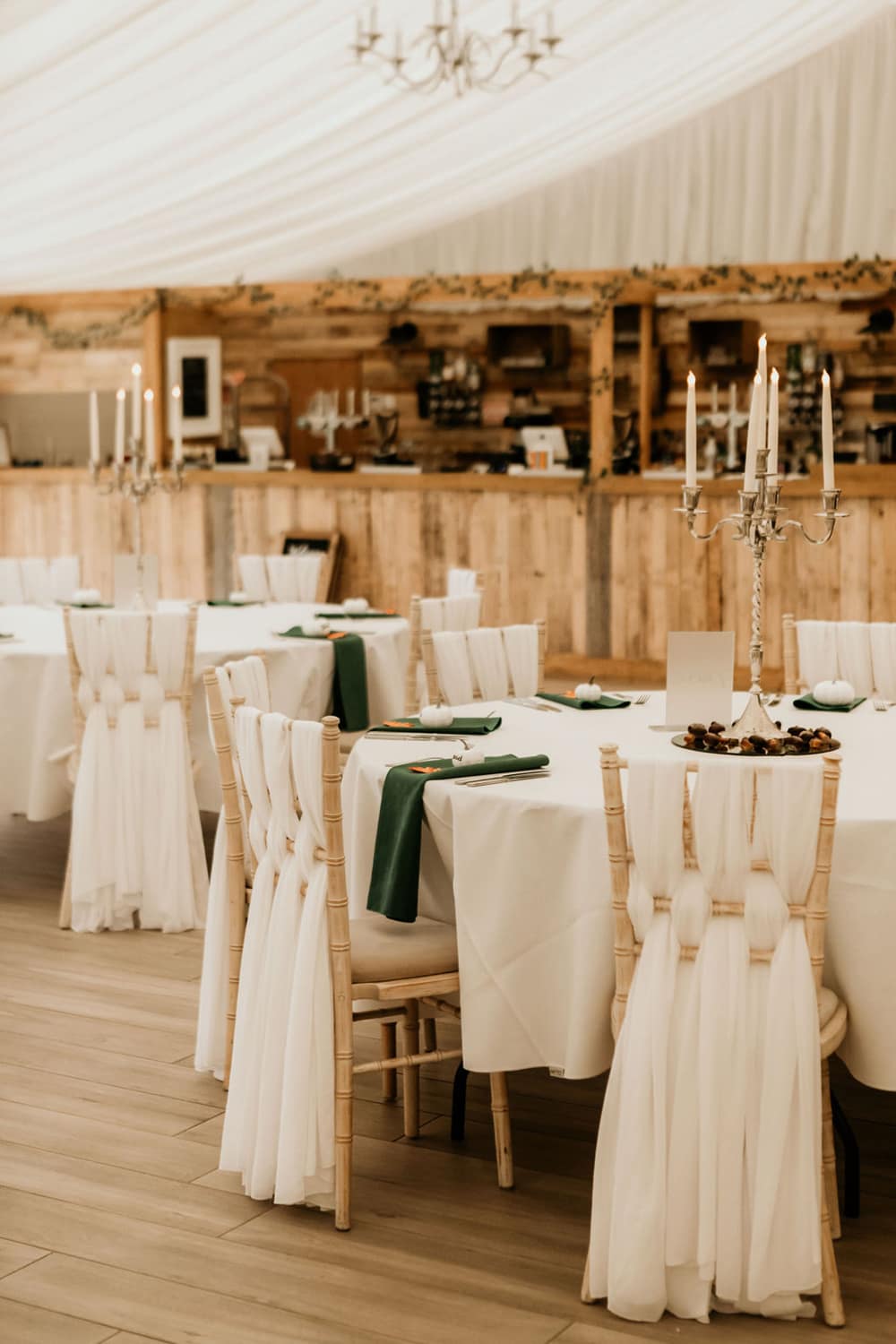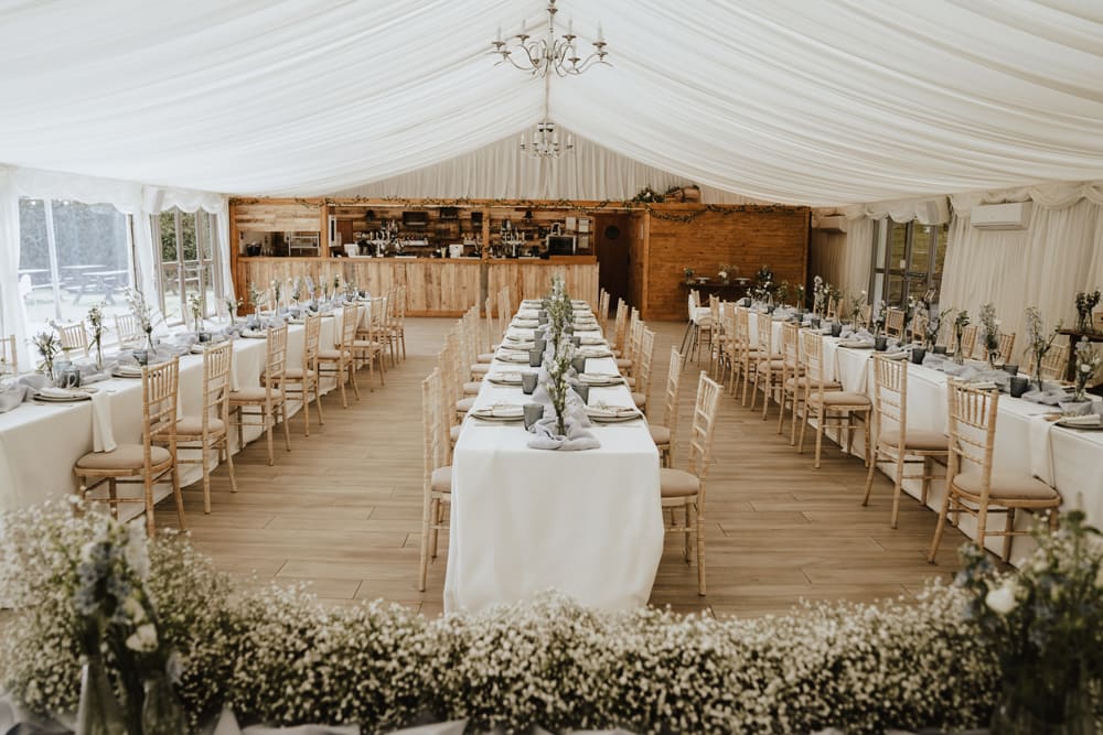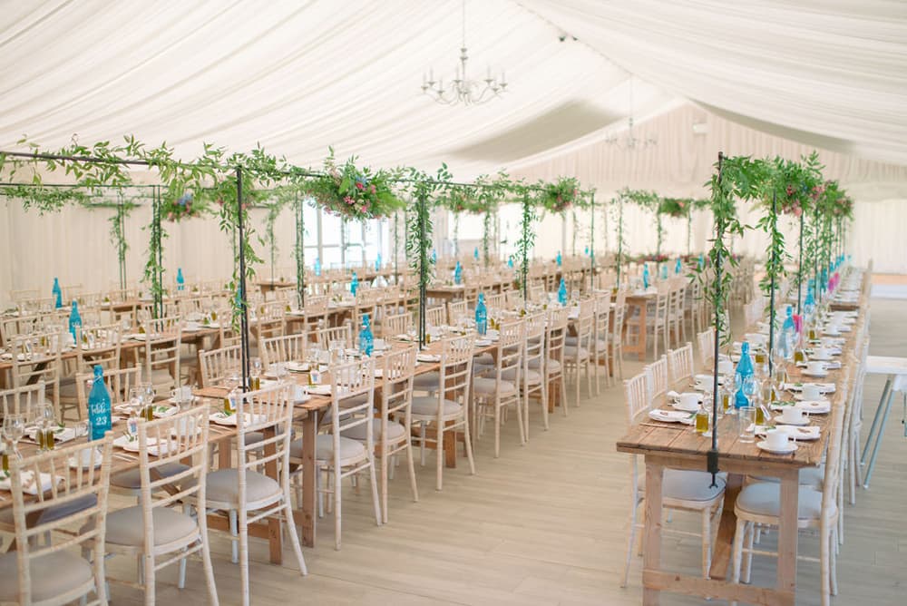 Due to restricted weight limits, we ask you not to hang anything from the sides or ceiling of the marquee and avoid fixing anything in place with something that might cause permanent damage. Due to health and safety fire regulations, we only allow LED candles inside the marquee. If you're not sure, please get in touch. Other than that, you can decorate as you like!