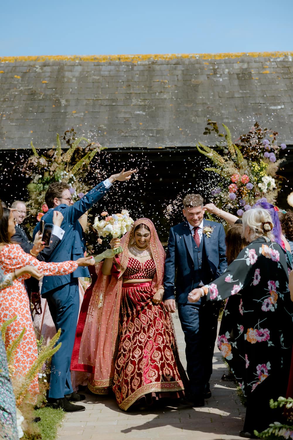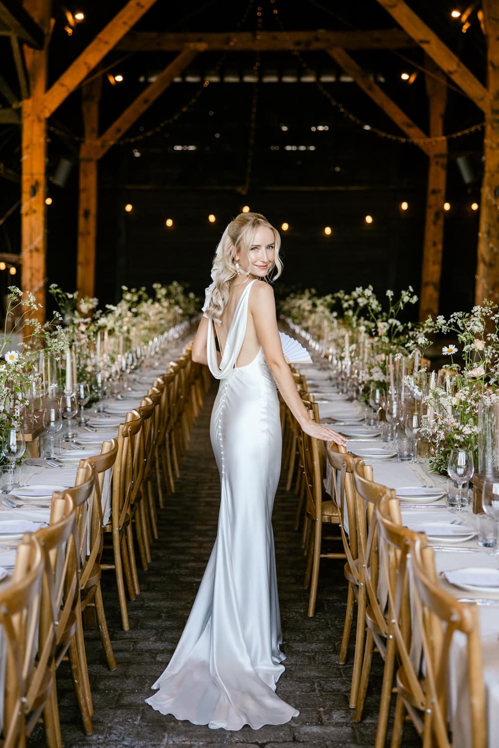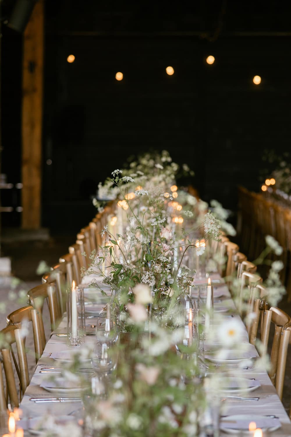 The reception spaces at Kingshill Barn are as versatile as they are beautiful. In addition to the stunning barn, the grass courtyard, encircled by wildflowers and festoon lights, is perfect for mingling, lawn games, or evening festivities under the stars. Late-night gatherings can take place in The Linhay, where the cosy wood burner keeps the atmosphere warm and inviting.