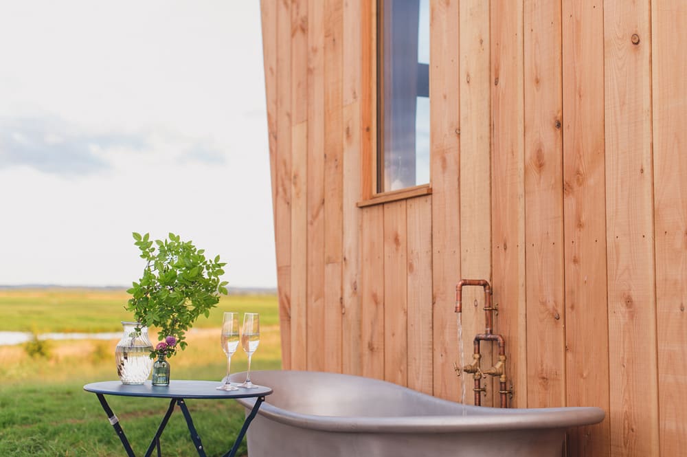 Elmley’s iconic huts, perfect for hosting your nearest and dearest overnight for your special celebrations. Each has a private outdoor seating area and miles of wilderness views from the fully-glazed ends.