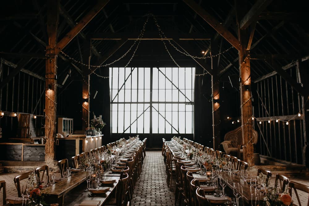The Grade II-listed Victorian barn offers a rustic yet elegant ceremony space. Its vaulted wooden ceiling is adorned with twinkling lights, and a large window frames the unspoilt and vast wild landscape beyond. Original wooden beams and pillars lend an air of understated grandeur to your celebrations, or use them as a blank canvas for your creative vision.