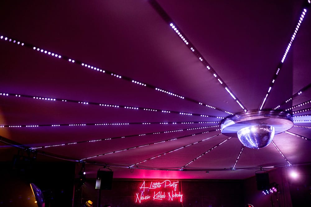 The Gillyflower boasts a 200-seated dinner capacity and up to 400-dancing to the custom-made Funktion-One AmbiSonic Sound System, designed to have specific features to make it perfect for weddings and events. The circular speaker layout means the sound can be contained within the dance-floor space so those who don’t feel like dancing can still comfortably converse and observe the frolics of others, which is perfect for the older generation who may not like the music or its volume! Meanwhile, those on the dance floor are treated to a sound quality worthy of any club. The sound can also be calibrated to fill the whole space should you want to crank things up to a proper wall-of-sound party vibe. The building is fully soundproofed, so the music will not disturb early sleepers.
