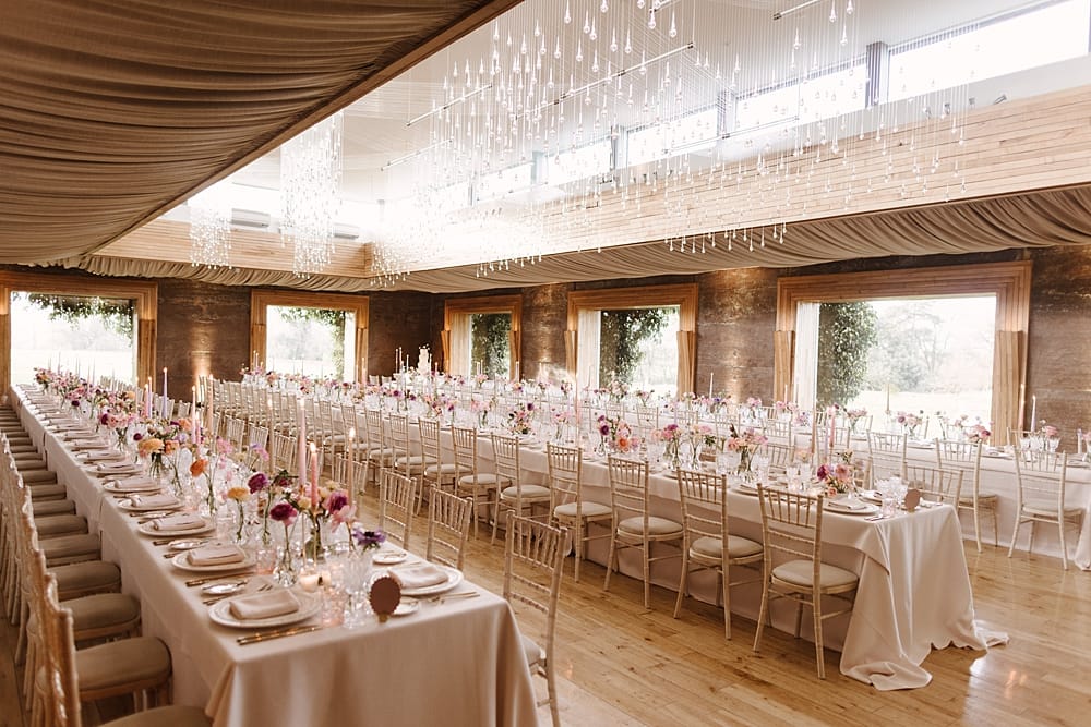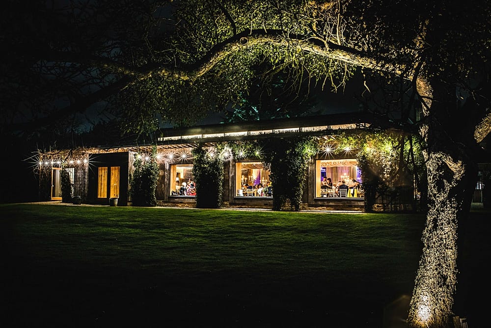 A unique fibre-optic lighting system designed and installed by Bruce Munro adorns the Gillyflower. There are huge seated windows with views over woodland and the Cotswolds. Outside, in full view of the Gillyflower, is a cosy fire pit with paths leading through the wild meadow to a huge area for boutique camping. The Gillyflower is constructed from local estate-farmed timber and rammed-earth walls hidden behind ‘living walls’ consisting of Ivy, Virginia Creepers and other beautiful climbing plants. Hi-speed Wi-Fi, biomass-powered air conditioning, a premium built-in bar, a catering marquee and an in-house events manager ensure this is the most complete and cutting-edge country wedding venue available in the UK today.