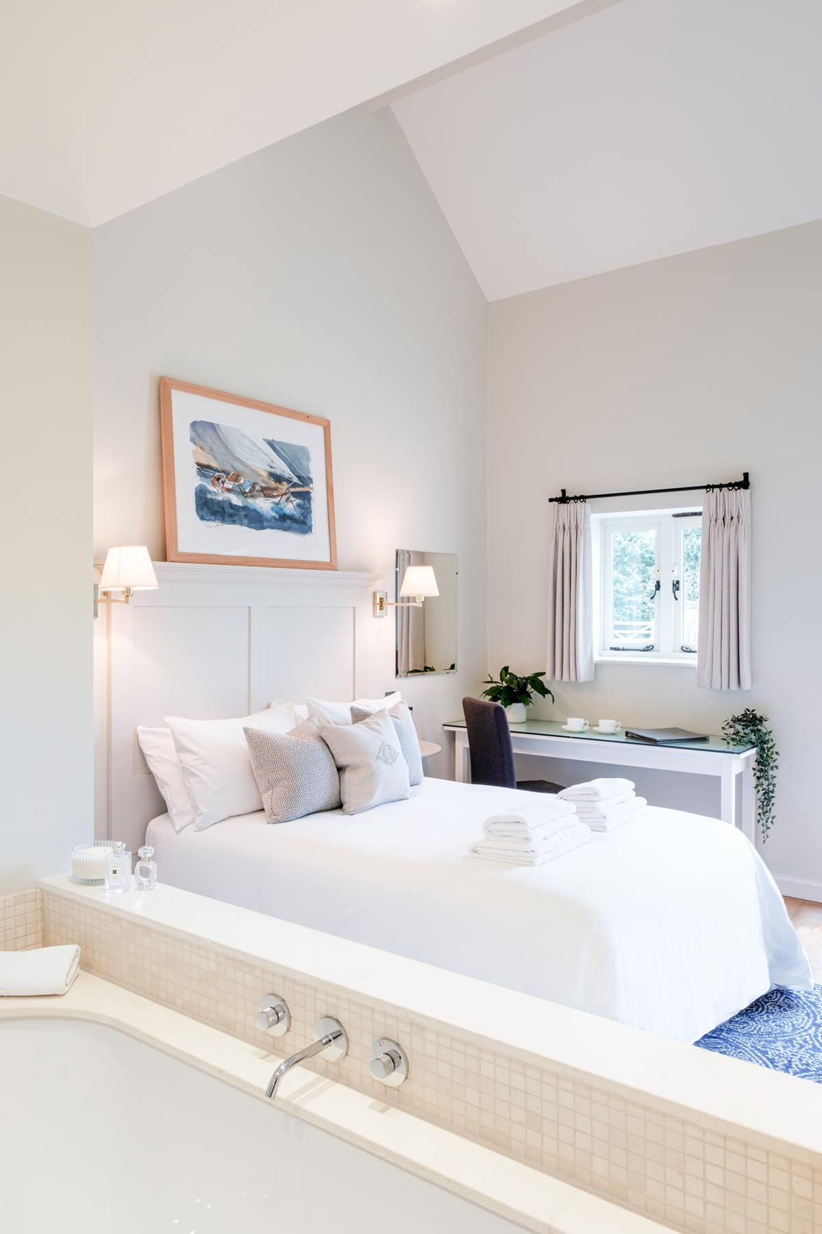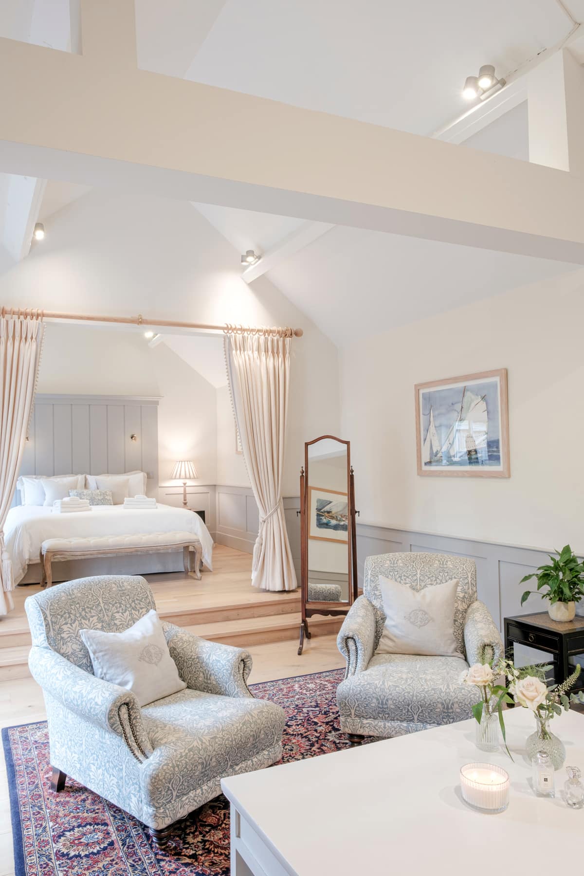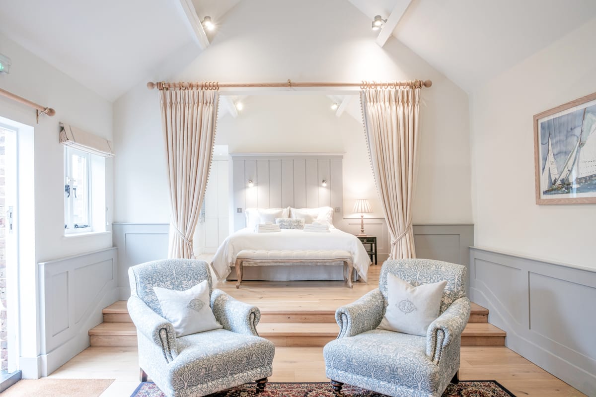 We have a total of seven guest bedrooms and our suite, just a stone's throw away from the barns, each accommodating two adults in each room. Please note that these rooms are booked through our couples, and we do not take direct bookings for these.