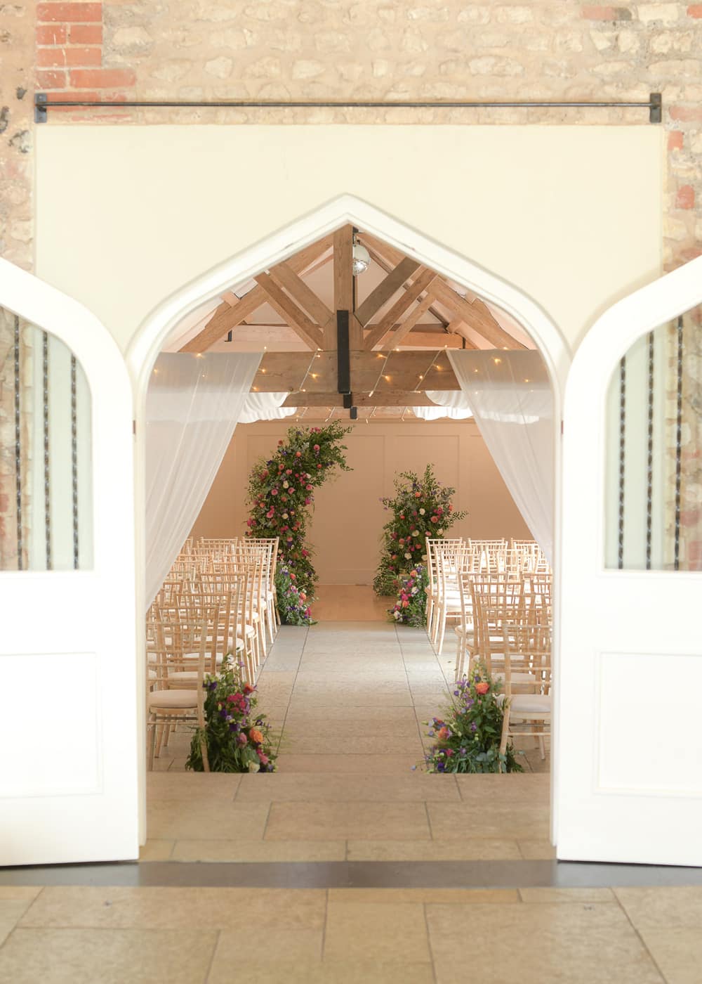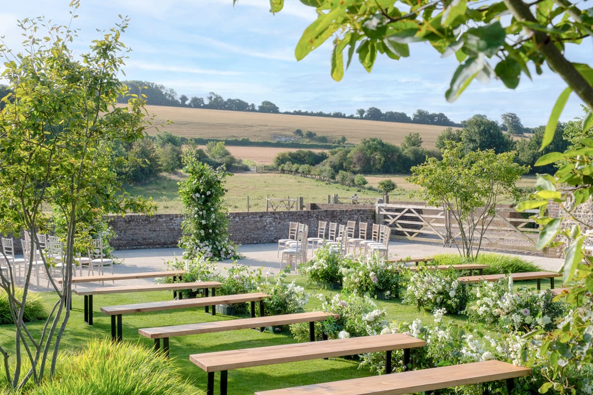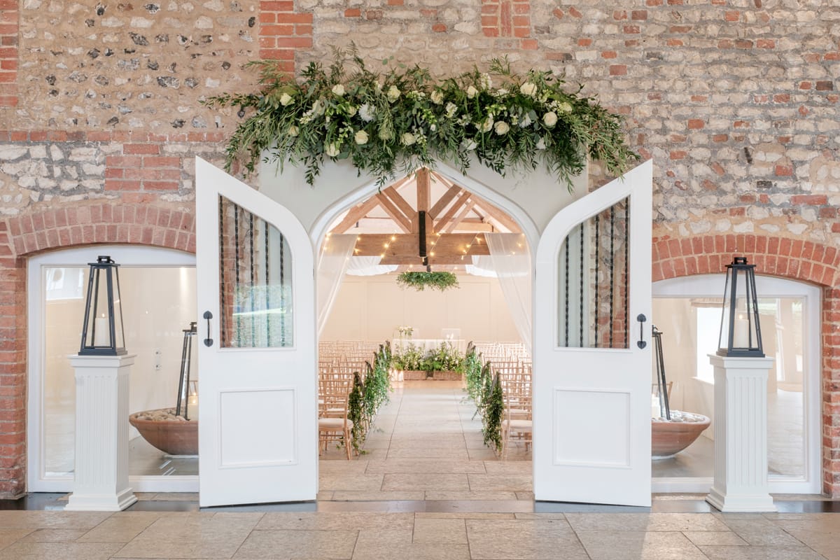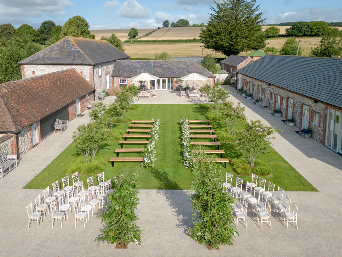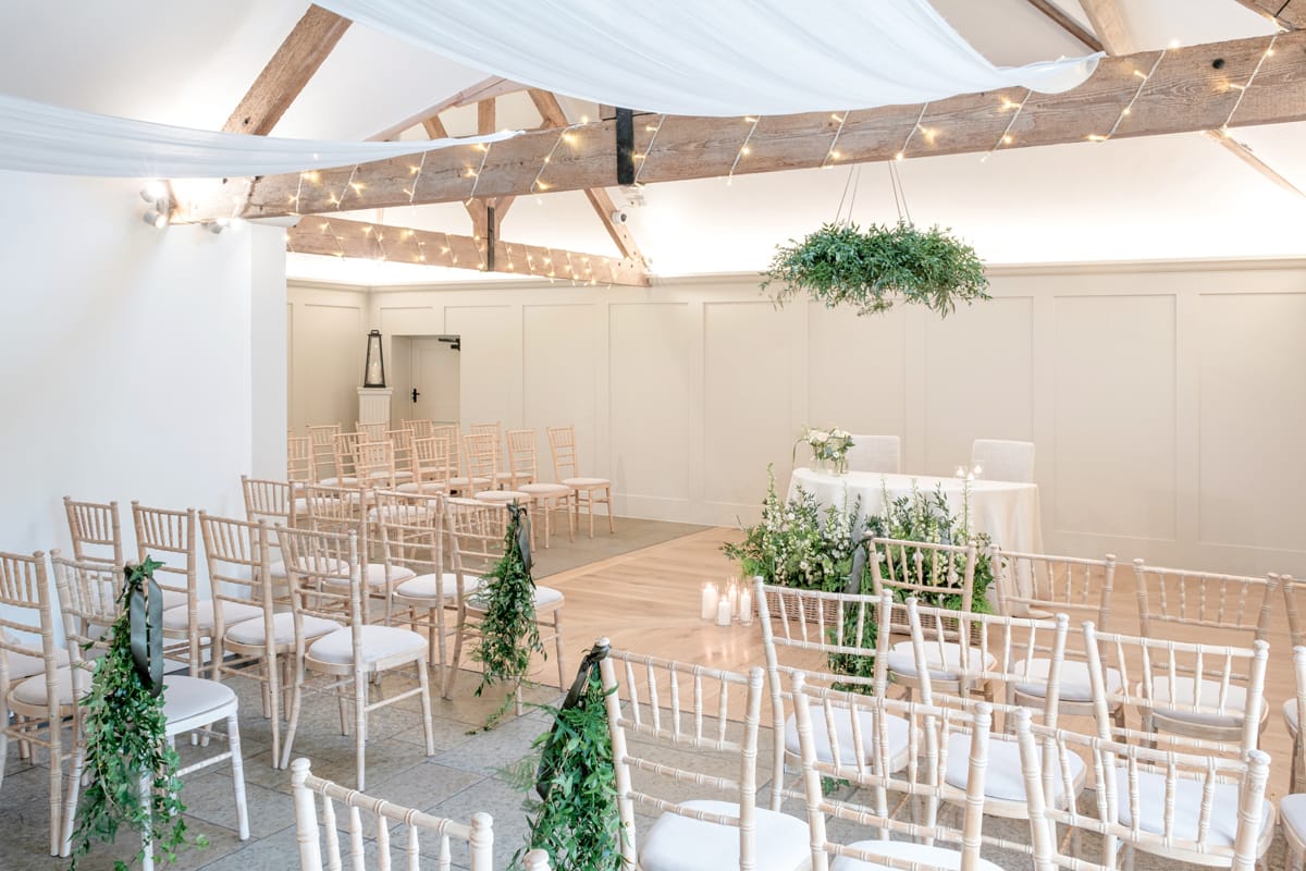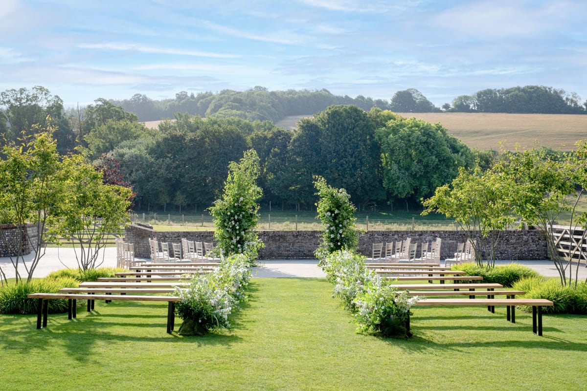 The light-filled and atmospheric Meadow Barn at Farbridge is licensed to hold civil marriages and partnerships, with seating for up to 135 guests. Couples can exchange vows with the picturesque backdrop of the South Downs National Park, creating a sense of tranquillity as they walk down the aisle. Multiple options are available for where guests can arrive and gather, how the entrance is made, and what music is played, whether live or recorded.