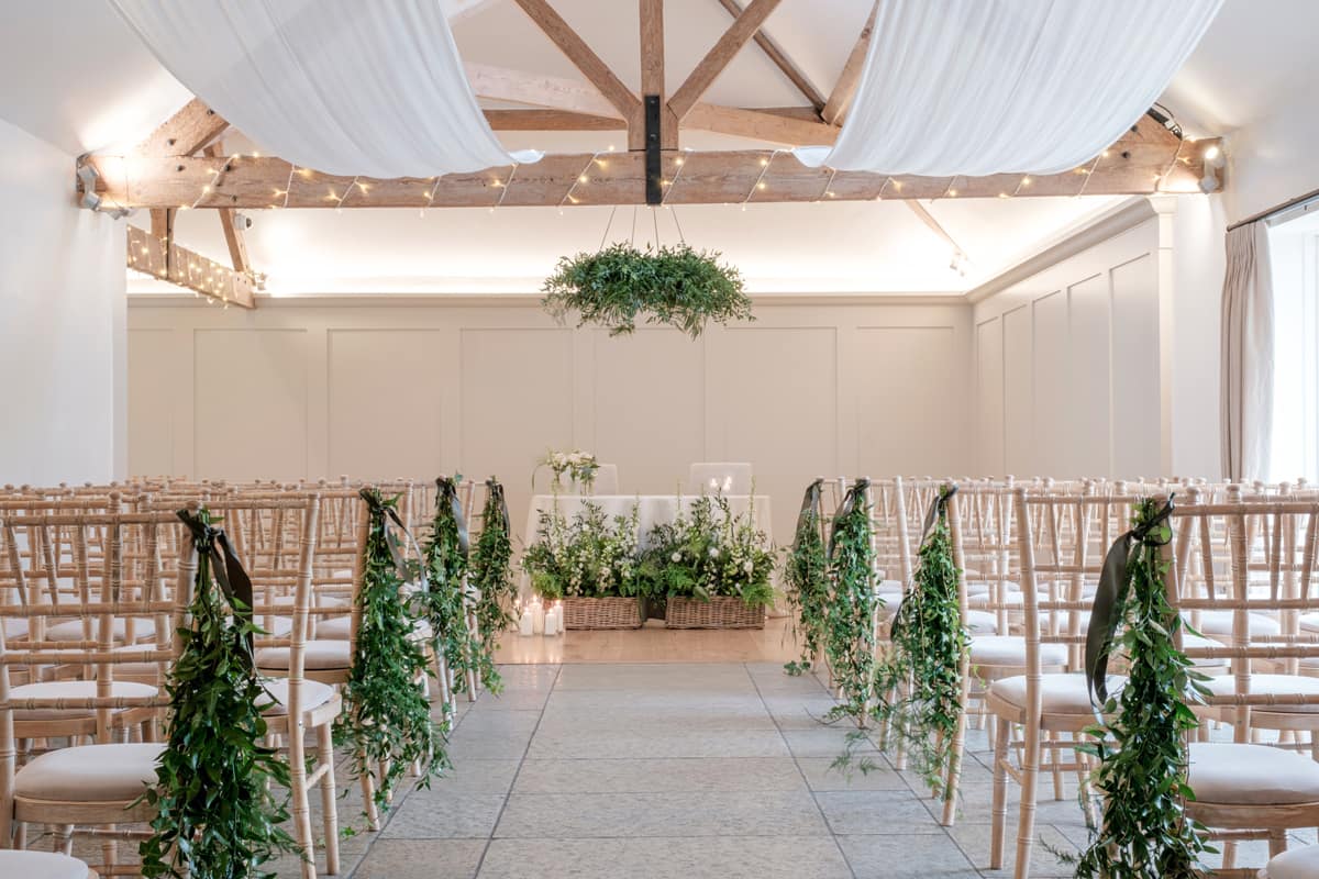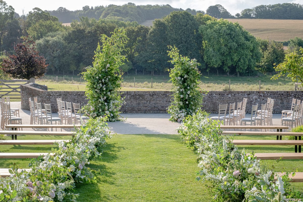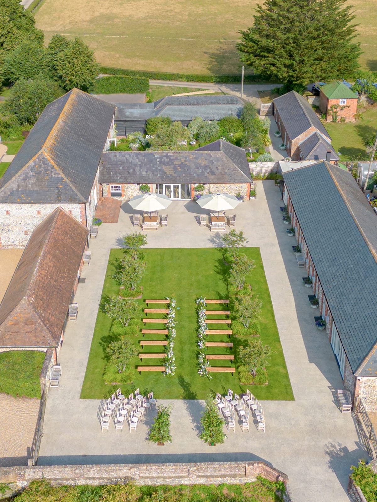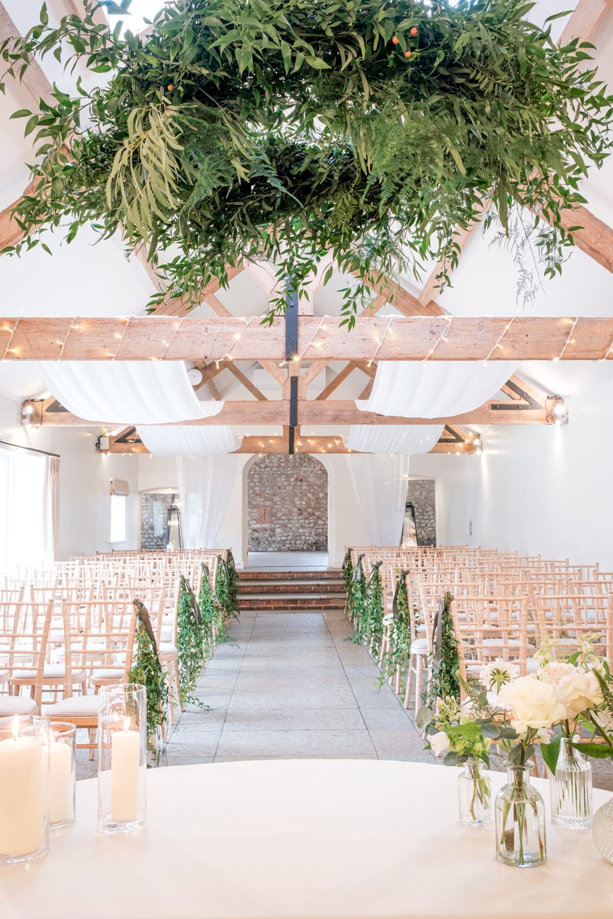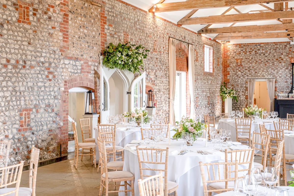 The light-filled and atmospheric Meadow Barn at Farbridge is licensed to hold civil marriages and partnerships, with seating for up to 135 guests. Couples can exchange vows with the picturesque backdrop of the South Downs National Park, creating a sense of tranquillity as they walk down the aisle. Multiple options are available for where guests can arrive and gather, how the entrance is made, and what music is played, whether live or recorded.