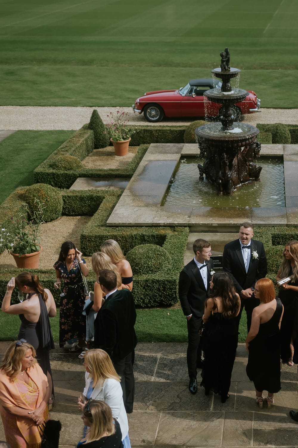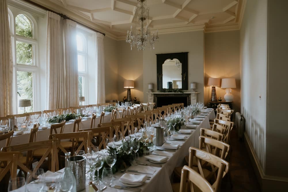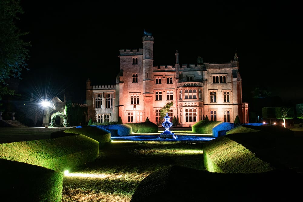 Farleigh House’s main event space, with adjoining Library Bar and Ballroom, seats up to 70 guests and is ideal for an intimate reception inside the house. Outdoors, the estate offers expansive grounds with capacity for up to 200 guests under a marquee or tipi, perfect for a larger celebration with Farleigh House as a magnificent backdrop. The lawns, Rose Garden, and lakeside areas are open for reception drinks, creating memorable moments throughout the estate’s beautifully maintained grounds.