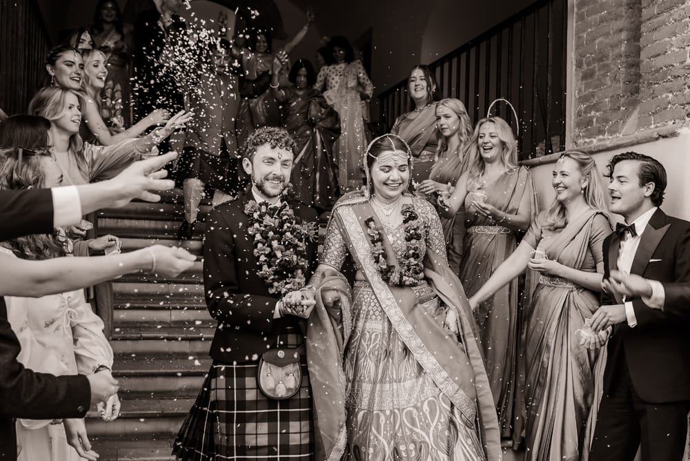 We loved that so many of our family and friends could stay at the venue with us, and the breakfast the next morning was great. The getting-ready rooms for both the bride and groom were fantastic. Even with some light rain, the venue ensured we could have our wedding outside in the rose garden, which was picture-perfect, with the old keep in the background of our photos.