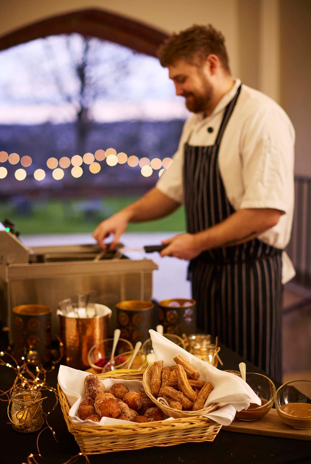 The venue offers a range of dining menus, including drinks and catering for every taste and budget. A typical menu for your guests could include a champagne reception with canapes, a three-course dining experience, including your choice of carefully selected wines, a surprise course, your toast, and a very popular Dessert Bar. For a late-night snack, why not offer your guests wood-fired pizzas from the Castle’s pizza oven while your entire party enjoys a spectacular fireworks display?