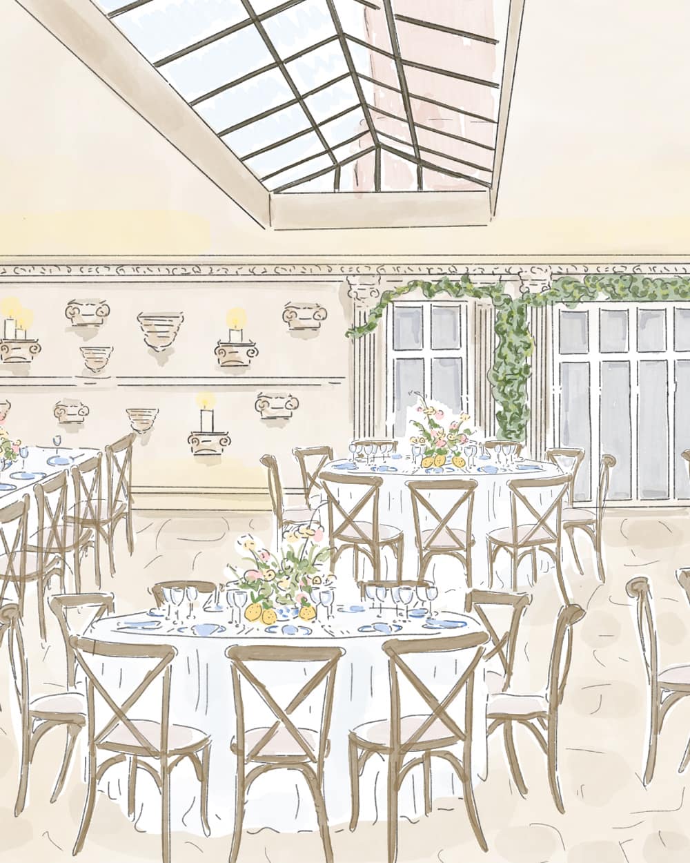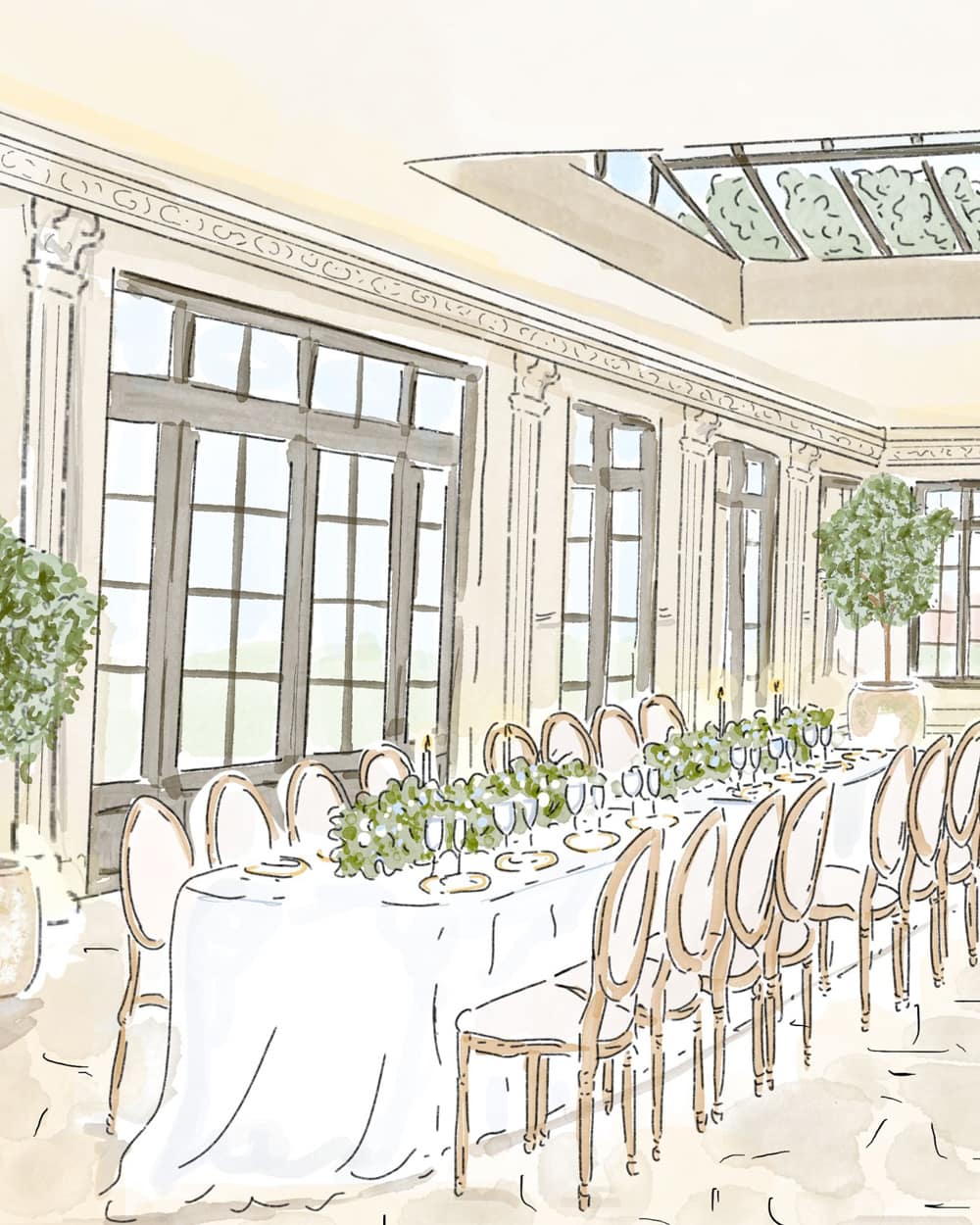 For your Wedding Breakfast, you’ll be able to choose between the house, the gardens, and the new Orangery, arriving in March 2026. The Orangery will have floor-to-ceiling glass and a central lantern, bringing in plenty of natural light and creating a calm, open feel inspired by classic French chateau design.