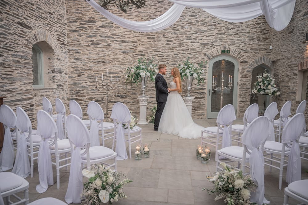 Say your vows in one of the castle’s stunning indoor or outdoor ceremony spaces, all offering sweeping views of the Dyfi estuary and the rolling Welsh countryside. The gardens have been beautifully landscaped, featuring an elegant fountain and a tranquil woodland walk. Ceremony spaces include a stunning indoor Atrium, or an outdoor pergola overlooking the Dyfi gardens.
