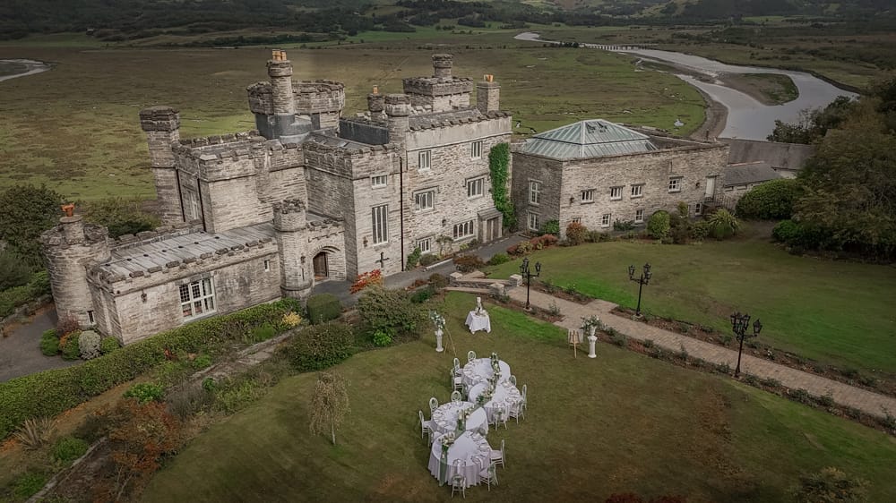 Nestled in the Small Hamlet of Glandyfi, this Grade II-listed Castle is an intimate venue. Inconspicuously tucked away behind “The Great Wall of Glandyfi”, Glandyfi Castle stands in 40 acres of landscaped gardens and woodland. To the front of the Castle lies an estuary frontage and sea view, looking out to the small harbour resort of Aberdyfi. Ynys-hir RSPB Nature Reserve is two miles away, a testament to the wildlife surrounding this historic castle in Wales.