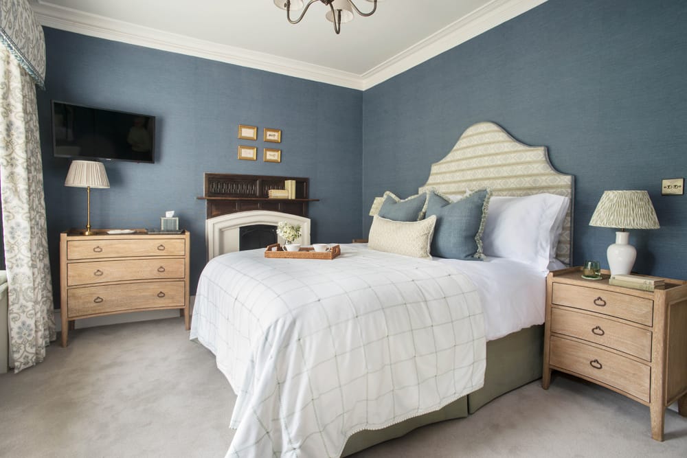 Glandyfi Castle offers exclusive overnight accommodation for 22 guests across 11 bedrooms. Nine rooms feature private bathrooms, while two share a Jack-and-Jill bathroom, ideal for families. Each room features modern comforts, including a dressing table, wardrobe, hair dryer, Smart TV, and a fully stocked bathroom with amenities.