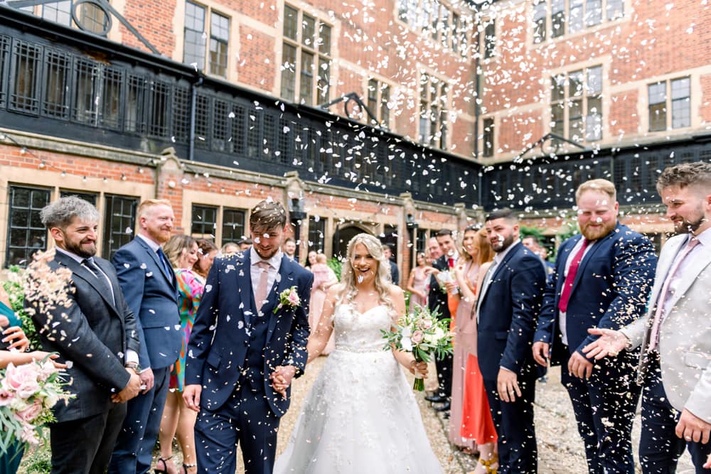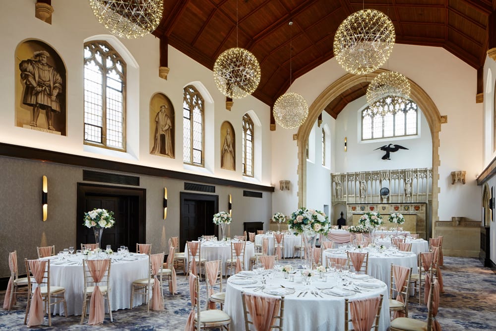 Poles Hall, a converted chapel, offers vaulted ceilings, chandeliers, and a minstrels’ gallery for a traditional ceremony. For a more contemporary setting, the Thundridge Suite overlooks the golf course, letting light spill across the room. Between May and September, the walled garden offers an outdoor ceremony, surrounded by manicured lawns and mature planting. Each space allows for careful choreography, ensuring your ceremony feels personal and uninterrupted, whether indoors or outside.