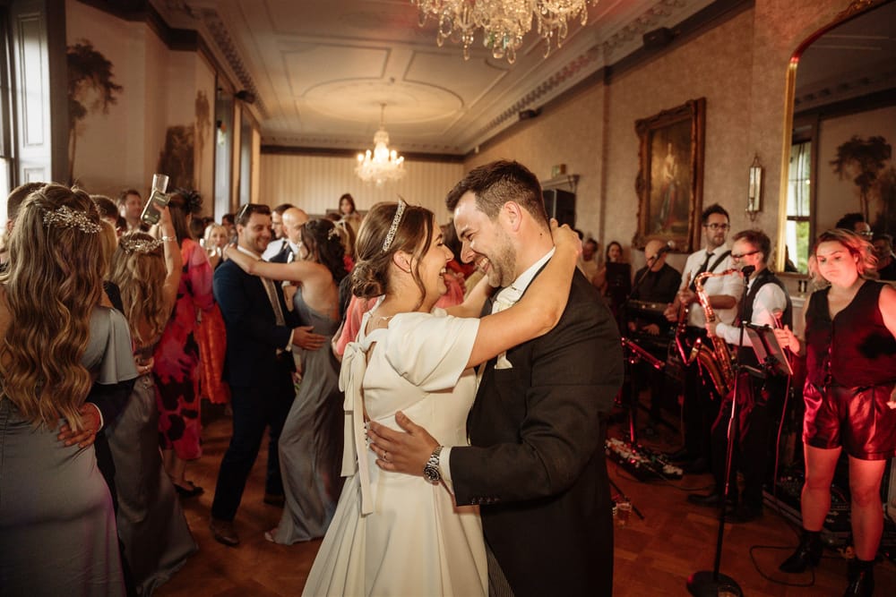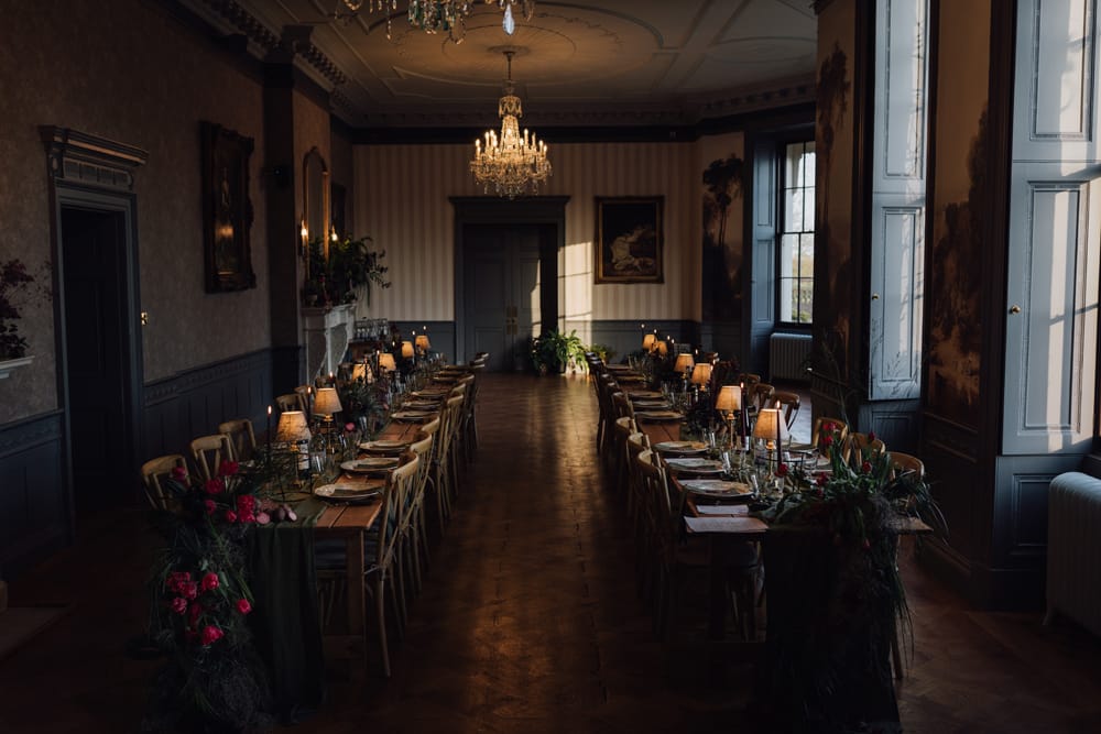 The ballroom and library can accommodate up to 150 guests for a sophisticated reception. These Georgian rooms open onto the Rose Garden through sash doors, creating a seamless flow between indoor and outdoor spaces. The grandeur of these settings, from the flicker of candles to the soft glow of chandeliers, provides an enchanting atmosphere for a celebration that lasts long into the night. Up to 250 guests can join in for the evening festivities, making it a truly unforgettable occasion.