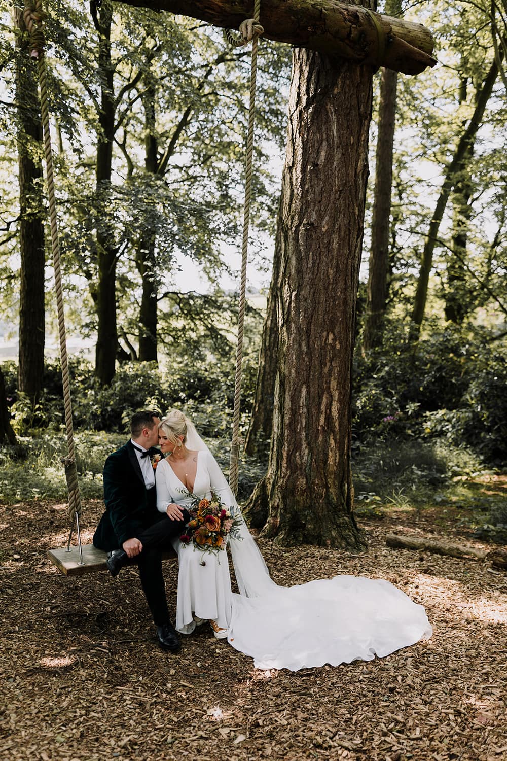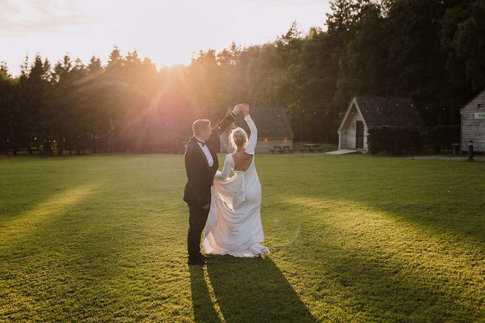 Hobbit Hill sits within 150 acres of rolling countryside in the Ribble Valley, surrounded by sweeping views of the River Ribble and the hills beyond. The venue’s rustic barn, woodland ceremony space, and distinctive cabins are thoughtfully positioned across this picturesque estate, once part of the legendary Tolkien Trail. Behind the estate, woodland shelters the venue while the land gently slopes down to the river’s edge, creating a private and intimate setting for a wedding day.